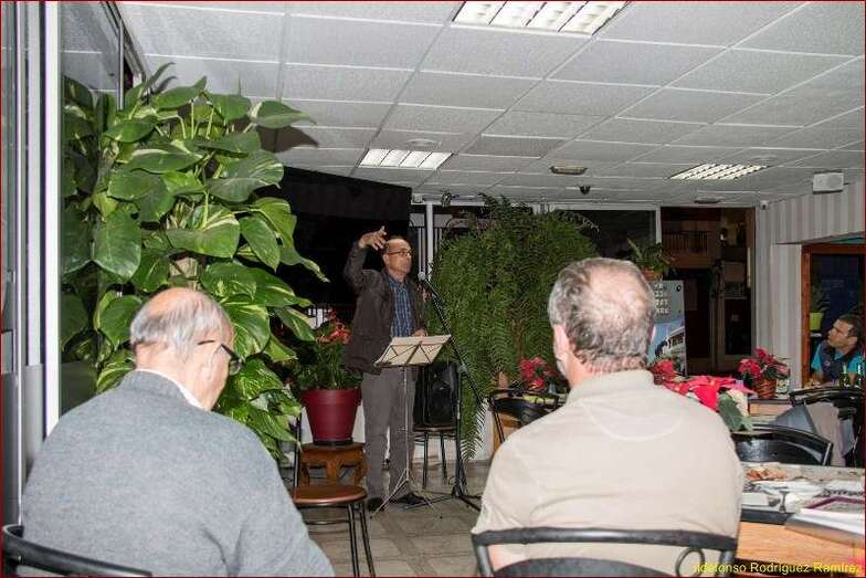Fernando Ojeda Pérez, ingeniero industrial,  magnífico conocedor y estudioso de las aguas que bajo su experiencia profesional, aficionado al estudio e investigación, análisis, bien documentado sobre el tratado de las aguas, orígenes, clasificación ha participado en numerosos ciclos, jornadas y monográficos sobre el tema hídrico y los ingenios hidráulicos y a motor característicos del paisaje y tejido industrial del pasado historiográfico de las islas para extraer el agua.  Fernando Ojeda, habla de las norias y expone el texto de un legajo notarial de 1687, del Archivo de Protocolos notariales de Tenerife, en el que se documenta la apertura de una noria por un propietario de tierras,  ubicación, trabajadores, estado de hombres como manera y mediciones aplicadas en aquel tiempo. Construcción de pozos,  uso de las norias, en sus clasificaciones y diferencias según lugares Recita el poema de Antonio Machado La Noria.