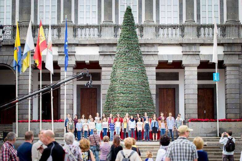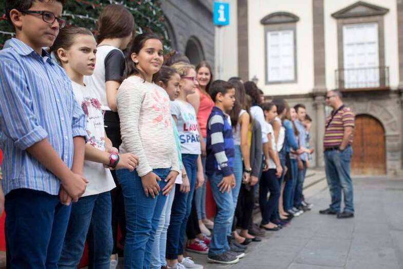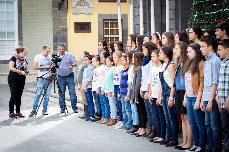 El coro infantil teldense graba en diferentes enclaves de la Isla una versión del popular villancico
