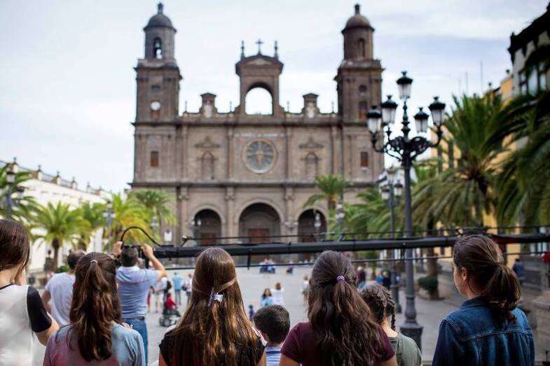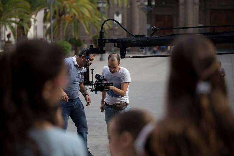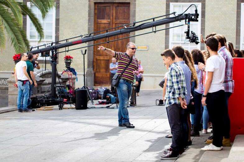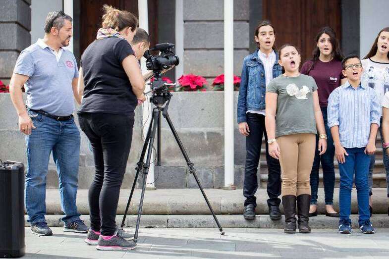 Momento de la grabación en la Plaza de Santa Ana, en la capital grancanaria (Foto Pedro Hernández) Momento de la grabación en la Plaza de Santa Ana, en la capital grancanaria (Foto Pedro Hernández)