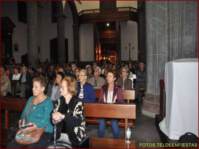 Finalizadas cada una de las composiciones el público que llenaba la nave central del templo dedicó un clamoroso y cálido aplauso culminando el concierto con el tema canario la bella obra musical instrumental y armonizada para voces Nube de hielo.
