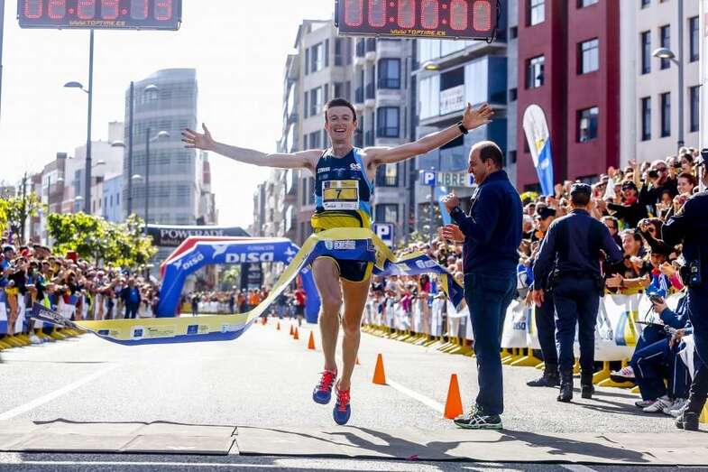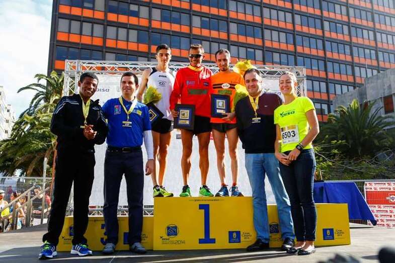 El conejero José Carlos Hernández, olímpico en Londres 2012, cumplió los pronósticos y se impuso de manera clara en el Medio Maratón con un tiempo de 1:04:49. Detrás de él entraron Óscar Fernández y Samuel Chávez. Entre las féminas, la holandesa Yvonne Van Vlerken impidió, con un crono de 1:18:38, la cuarta victoria en Gran Canaria de Tamara San Fabio, segunda por delante de la grancanaria Patricia Díaz.