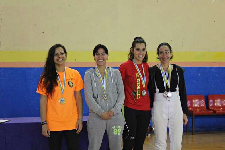 En la entrega de medallas participaron Francisco Vera, vicepresidente de la Federación Canaria de Esgrima (FCE), Rosa Montoro (presidenta del Club La Sala de Armas), Francisco Reguero, presidente del Ceisca y Alexis Ajeno, vocal de la FCE.