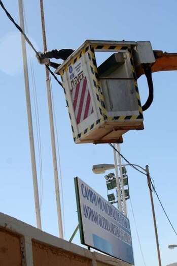 También se han realizado trabajos en el Campo Municipal Antonio Guerra Guerrita en el barrio de La Herradura, donde se ha repuesto en una primera fase 70 metros de tendido eléctrico, que alimentarán las farolas para el alumbrado público del interior del recinto deportivo que se encuentran por la entrada principal de dicha instalación.