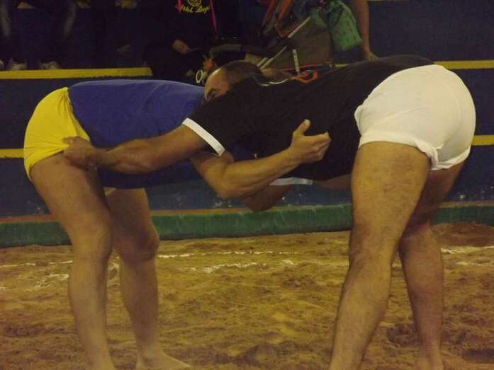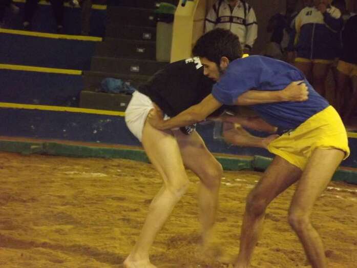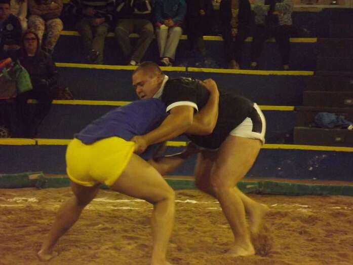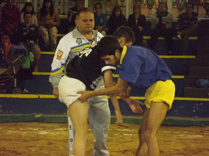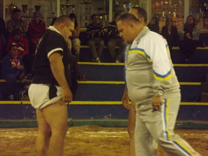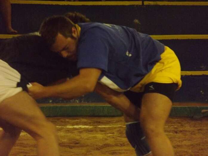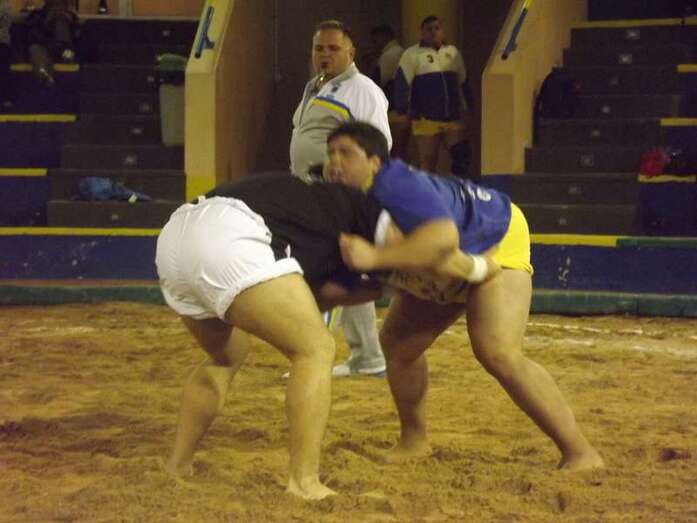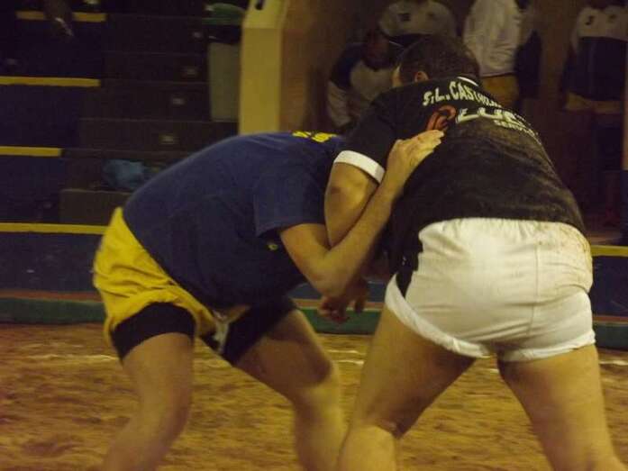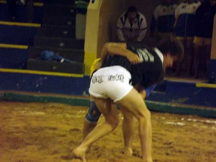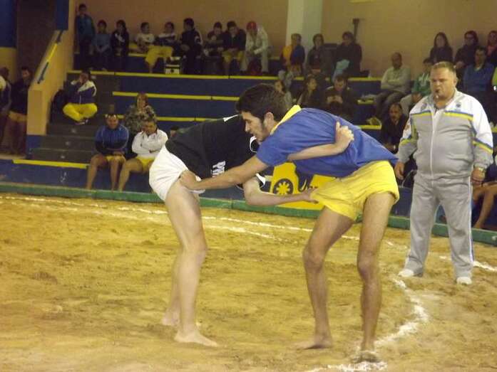 Entonces llegó la agarrada de la noche entre los puntales A y C Ricardo Rodríguez, ‘Medianito IV’, y Jonay López. En la primera, a López se le fue la mano de la cintura y eso lo aprovechó al máximo artillero local para poner en ventaja a su equipo. En la segunda, el ‘C’ teldense llevó la agarrada hasta el bocinazo final. Durante los 1:30, el teldense buscó levantar a su contrincante para después voltearle, cosa que no pudo debido a la fuerza física del ingéniense.