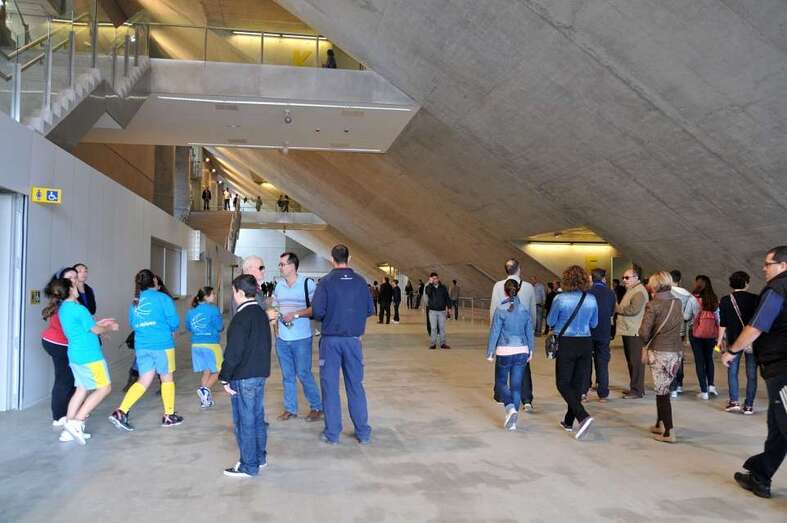 Las puertas del Gran Canaria Arena se abrieron a las 9.00 horas y desde ese momento fue continua la presencia de aficionados y curiosos que alabaron la versatilidad de esta gran instalación, llamada a convertirse en uno de los iconos de la isla.