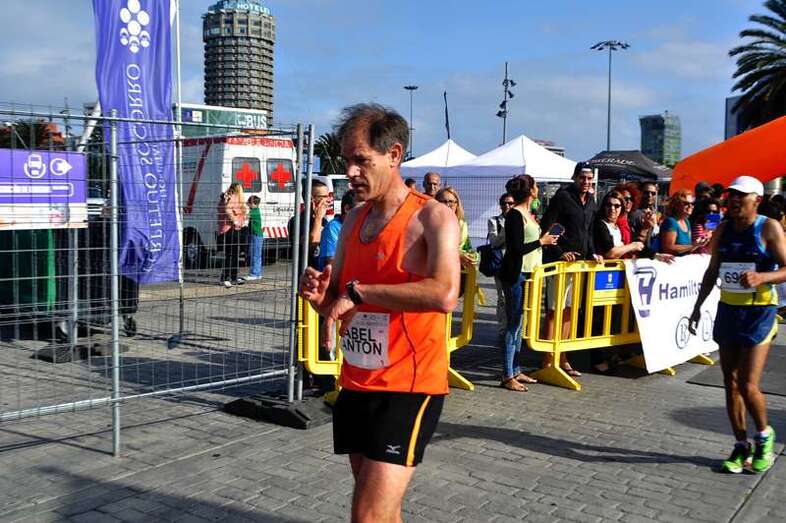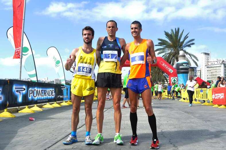 El grancanario Guedes, del CAI Gran Canaria, se mostró muy “feliz” tras firmar un tiempo de 01:12:45 en la modalidad de medio maratón y superar el subcampeonato logrado en la pasada edición. Francisco González, del club Rayo, concluyó en la segunda posición con un tiempo de 01:14:49, mientras que Gerardo Domínguez, del UAVA, ocupó la tercera posición (01:15:41), en un duelo intenso entre ambos.