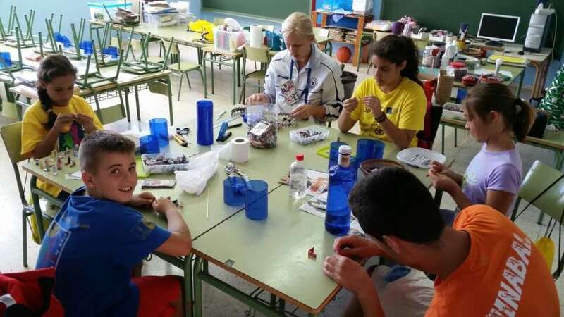 Tres talleres por lo que iban rotando los grupos tenían lugar a media mañana. En ellos aprendieron a jugar al bádminton, las nuevas tecnologías para reforzar sus conocimientos, pero también a realizar manualidades con material reciclado. De sus manos salieron creaciones como una cajita con palos de polos, un florero con tubos de servilletas o un lapicero. Así descubrieron que casi todos los materiales pueden tener una segunda vida y si no es así, que es necesario separarla en la basura para reciclarla.
