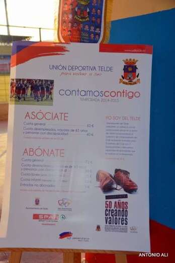 El otro eje de la campaña es Asóciate a la UD Telde, perfilada para activar la masa social del club y abrir las puertas de la entidad a sus afiliados. La cuota general será de 60 euros anuales, con descuentos para desempleados y discapacitados (40 euros) y jóvenes (20 euros).