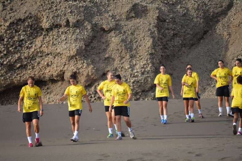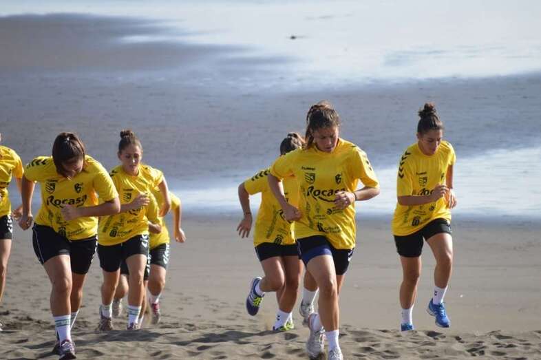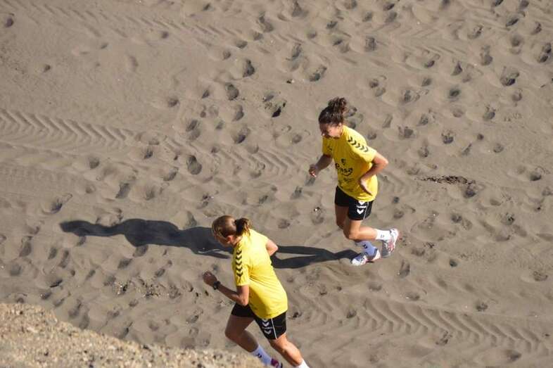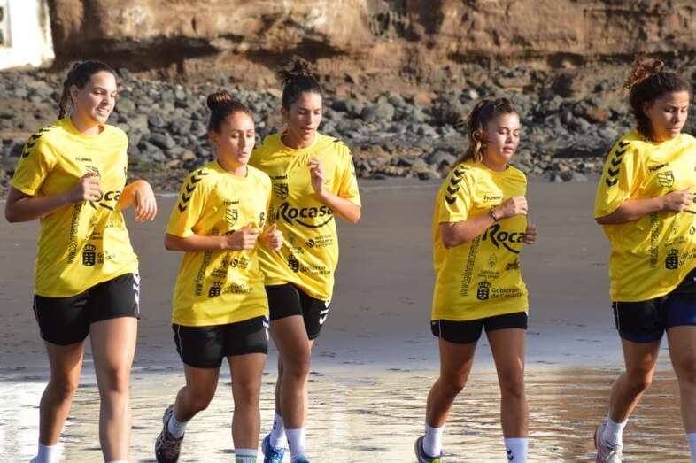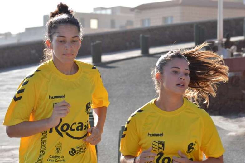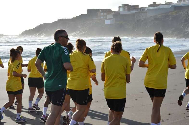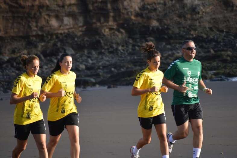 Las jugadoras grancanarias corrieron tanto en la orilla como en el paseo marítimo que rodea esta cala teldense, donde pudieron examinar su fuerza y resistencia física gracias a las pronunciadas pendientes que copan el litoral.
