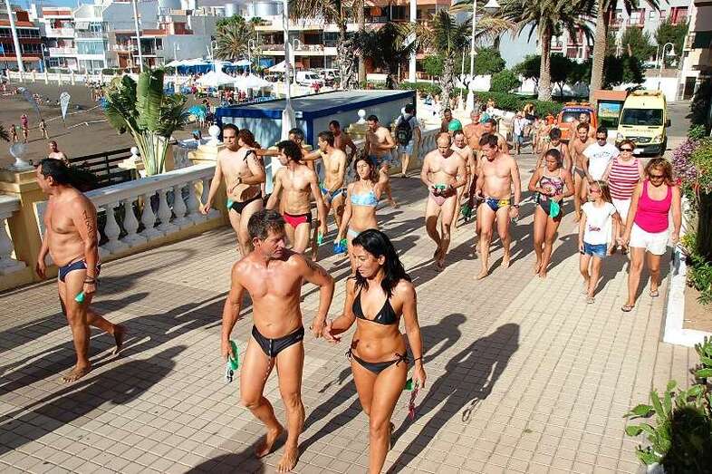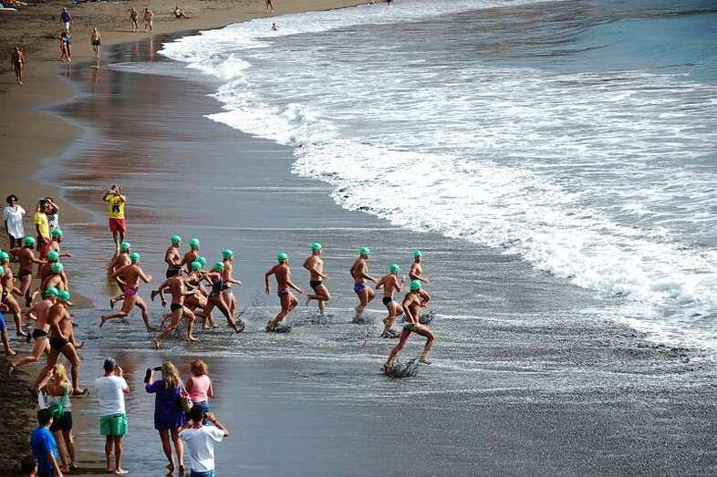 La Playa de Salinetas fue el centro de encuentro de los nadadores que se dirigieron posteriormente a la Playa de Melenara donde dio comienzo en su extremo Sur la competición en la que los atletas debieron cumplimentar una distancia de 1.500 metros por el recién estrenado Canal a Nado.