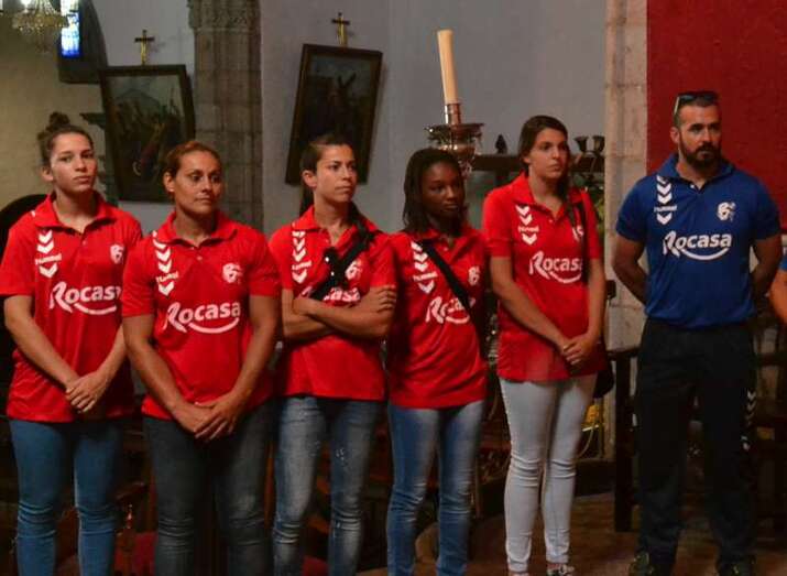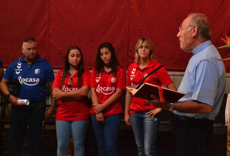 El párroco José María Cabrera aprovechó la ocasión para desearle suerte a las jugadoras y cuerpo técnico para esta temporada, en la que optan a cuatro títulos, tres nacionales y uno europeo, entre los que se encuentran la Supercopa de España, Liga, Copa de la Reina y Copa EHF.