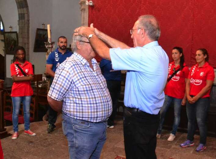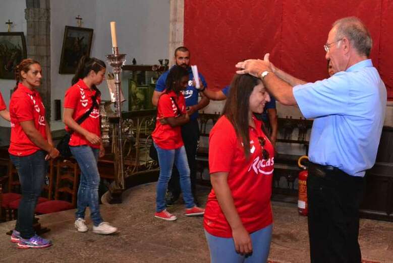 En señal de agradecimiento Cabrera bendijo una a una a las deportistas de la primera plantilla a las que manifestó sus mejores deseos para el encuentro que el equipo disputará dentro de cuatro días, frente al Bera Bera, en el que será su primer título de este año, la Supercopa de España.