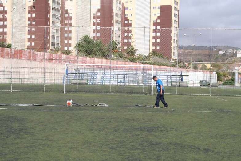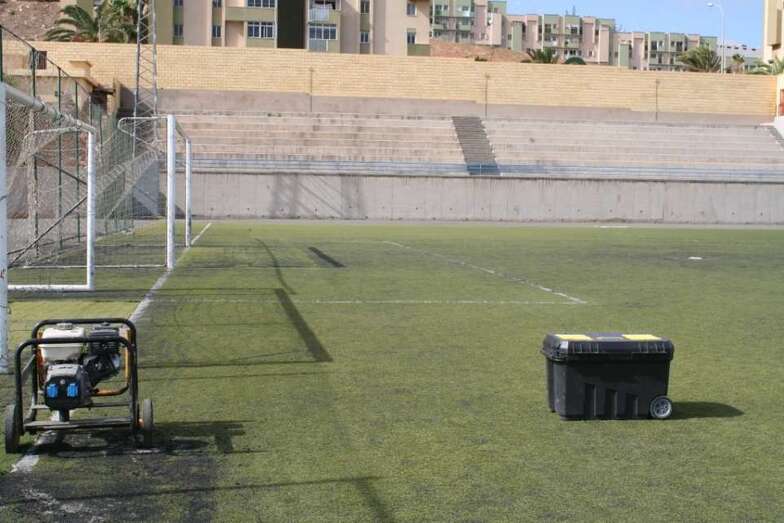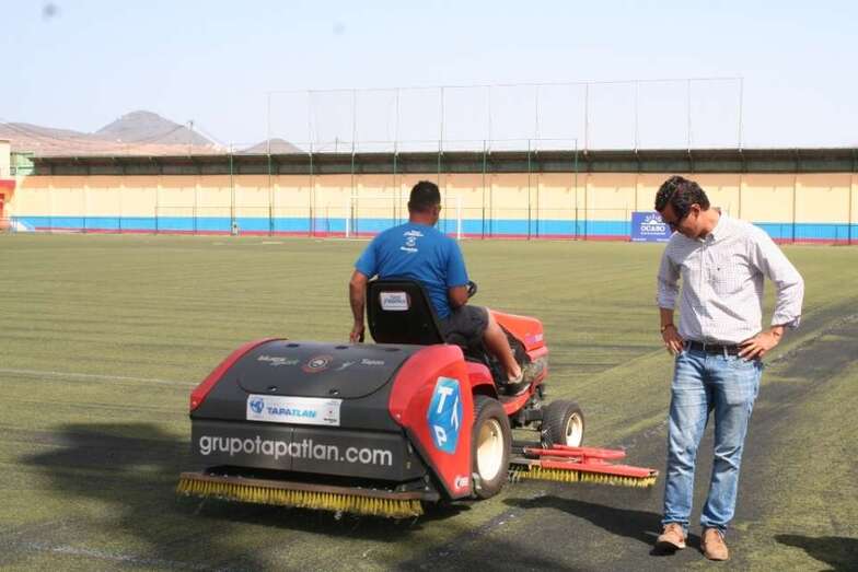 Telde.- La Concejalía de Actividad Física y Deportes prosigue con los trabajos de mejora y mantenimiento de instalaciones deportivas. Un programa diseñado por el área que coordina Pablo Rodríguez y que en los últimos días ha centrado sus trabajos en el saneamiento del césped artificial de los estadios municipales Pablo Hernández y Pedro Miranda.