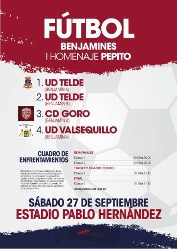 Telde.- Los más pequeños de la entidad azulona serán los encargados de disputar este sábado el cuadrangular de benjamines en homenaje a Pepito. Los clubes participantes serán en esta ocasión el CD Goro, UD Valsequillo, UD Telde A y UD Telde B. Con esta categoría se cierran los sucesivos eventos de pretemporadas que han permitido acondicionar a los jugadores de cara al inicio de sus respectivas ligas.