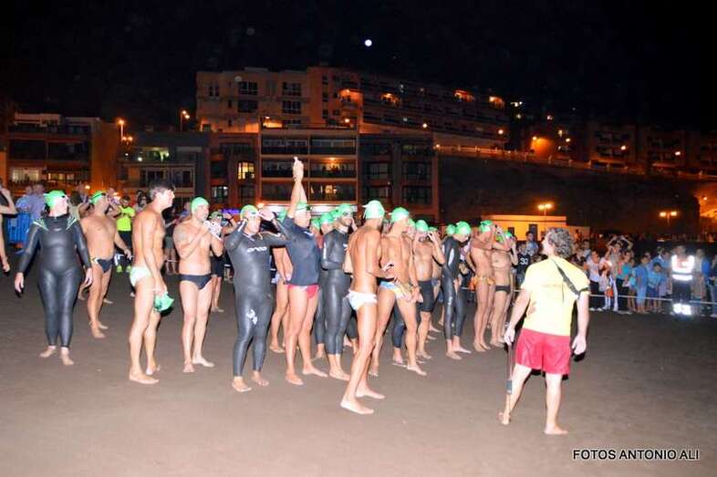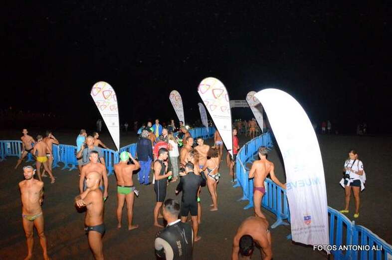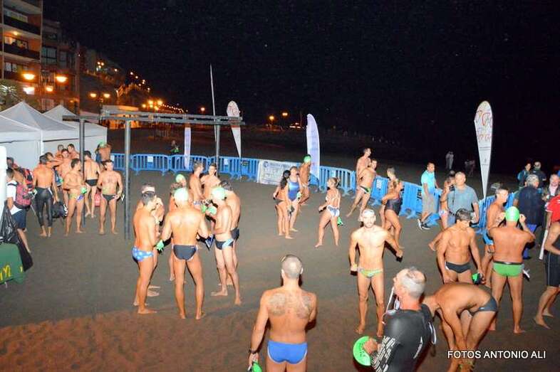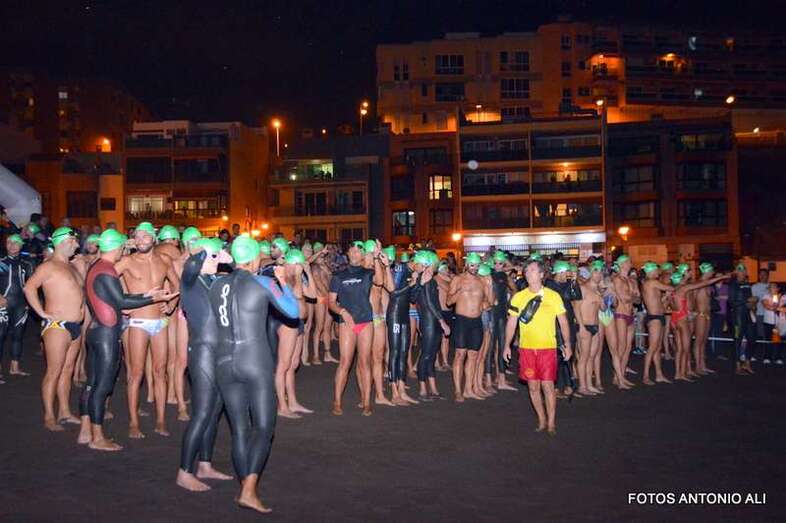 Un total de 250 nadadores desafiaron ayer viernes a la oscuridad de la noche y se lanzaron a las sombrías aguas de Melenara para surcar el recorrido de 1,5 kilómetros previsto por la organización entorno a un sector del nuevo canal a nado de Telde. Una gran fiesta de la natación canaria, patrocinada por Canaragua,con la que el la Concejalía de Actividad Física y Deportes del Consistorio teldense quiso rendir homenaje al extrabajador municipal jubilado Antonio Concepción Rodríguez, amante y referente de esta disciplina en las islas.