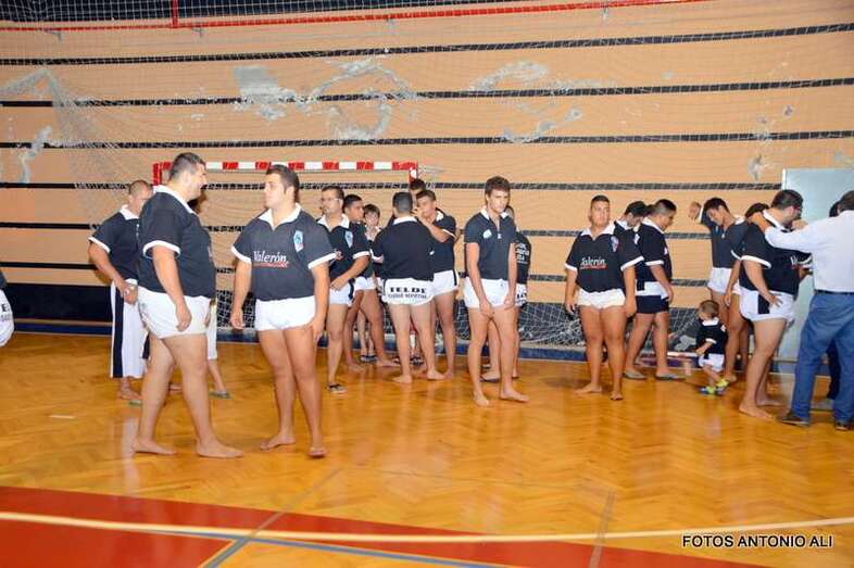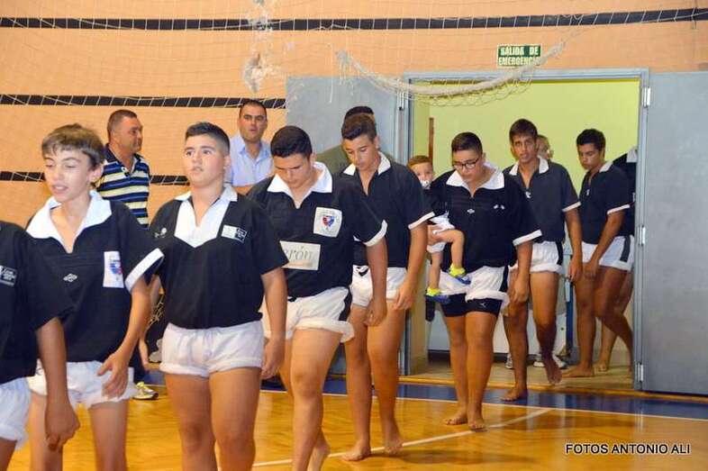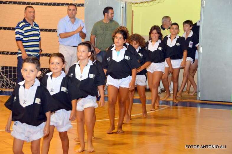 Los 45 bregadores del conjunto representativo de la ciudad desfilaron sonrientes sobre el parquet del pabellón del Paco Artiles y recibieron la ovación y el apoyo del medio centenar de seguidores, así como del concejal de Actividad Física y Deportes del Ayuntamiento de Telde, Pablo Rodríguez; y José Calero, representante Lude Gestiones y Servicios; quienes también les desearon la mejor de las suertes de cara a esta nueva temporada 2014-2015.