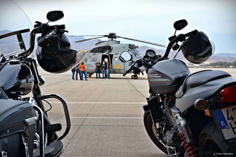 Las grandes atracciones para los visitantes fueron el helicóptero Superpuma y el avión CN-235 con los que el 802 Escuadrón SAR de Canarias lleva a cabo sus labores de rescate. Soldados de dicho cuerpo militar invitaron a los socios del Free Chapter Canarias a subir a ambos aparatos. La ocasión no fue desperdiciada para los propietarios de las Harley Davidson para inmortalizar esos momentos con sus cámaras fotográficas.
