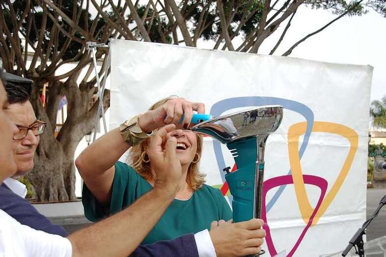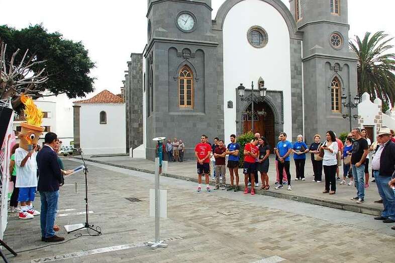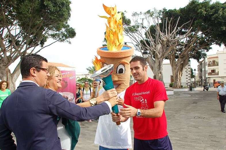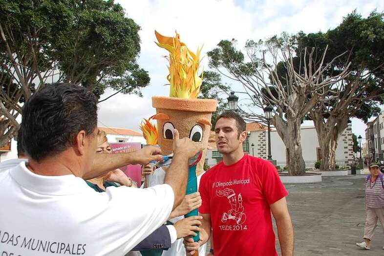 Telde.- Las IV Olimpiadas Ciudad de Telde arrancaron este lunes poco después de las 10.00 horas en la plaza de San Juan. La alcaldesa Mari Carmen Castellano y el concejal de Deportes, Pablo Rodríguez, fueron los encargados de dar apertura al recorrido de la antorcha olímpica y entregársela al famoso tenista David Marrero, quien efectuó el primer tramo por la calle peatonal de Licenciado Calderín. TA avanza reportaje gráfico de la apertura.