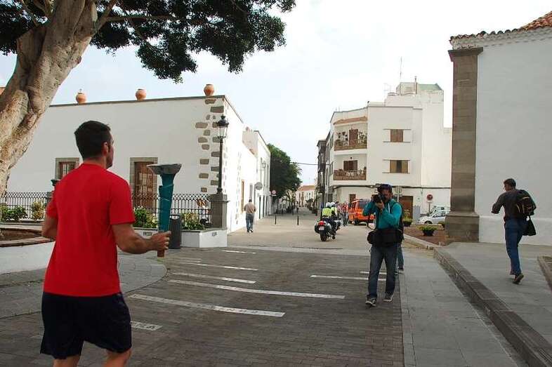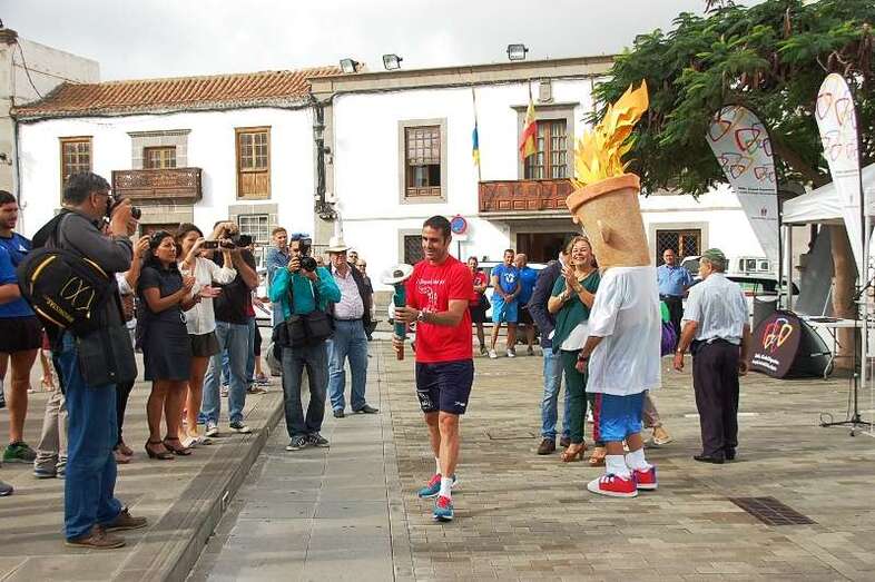 El tenista David Marrero cogió la antorcha de manos de la alcaldesa y del edil de Deportes y efectuó el primer tramo del recorrido por la calle peatonal de Licenciado Calderín. A la altura de la Biblioteca Municipal de San Juan, el relevó lo tomó un ciclista del Club Bicitel, iniciándose así un periplo de cinco días, hasta el próximo viernes 7 de noviembre, que llevará la antorcha por todos los barrios y asociaciones de vecinos del municipio de la mano de 100 personas, entre deportistas y personas vinculadas al movimiento social y vecinal de Telde.