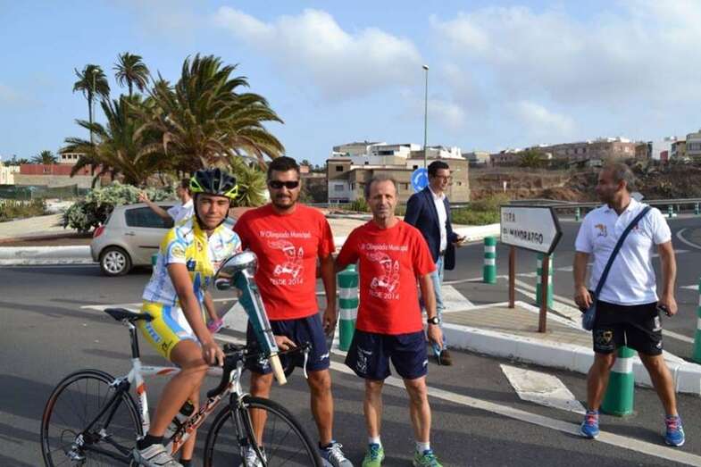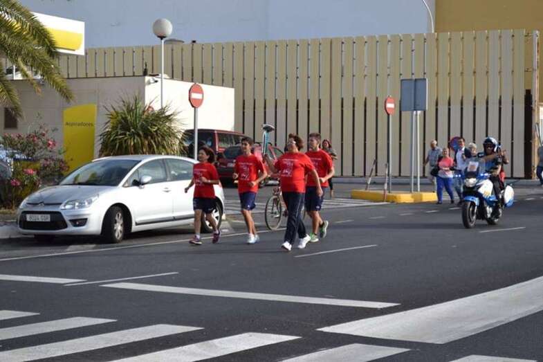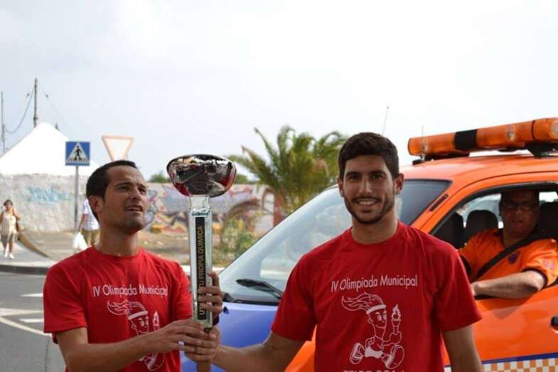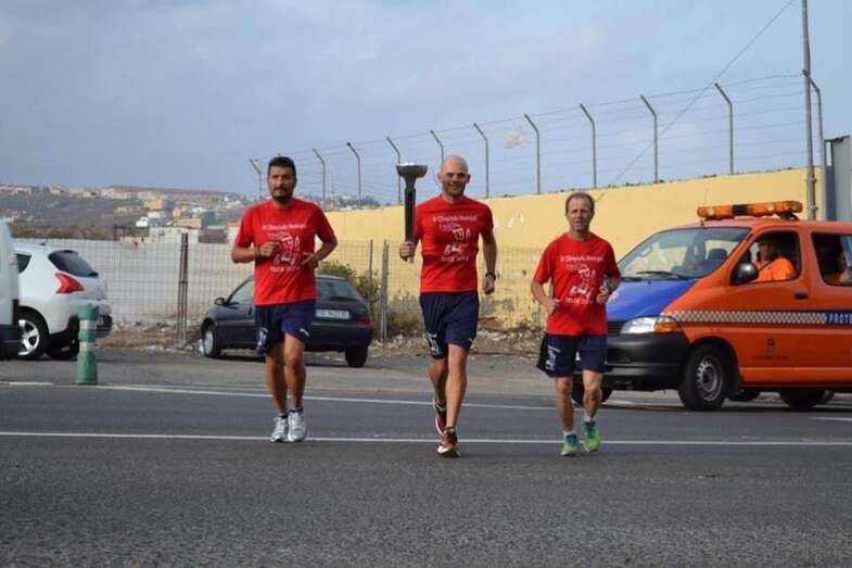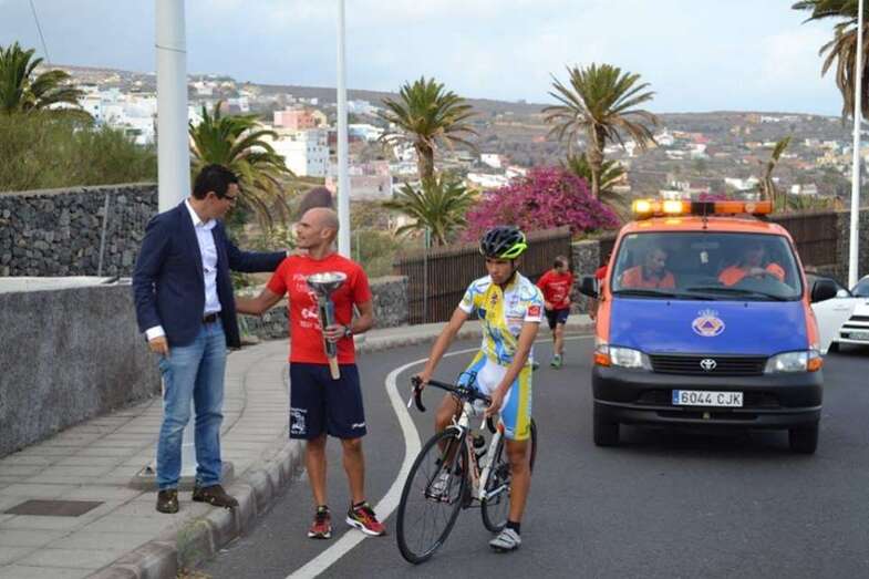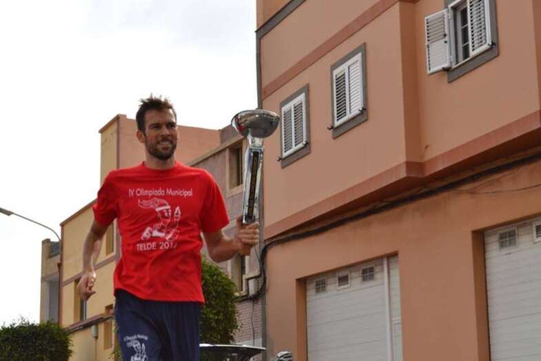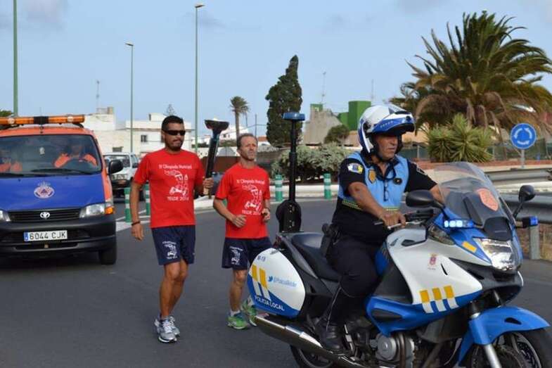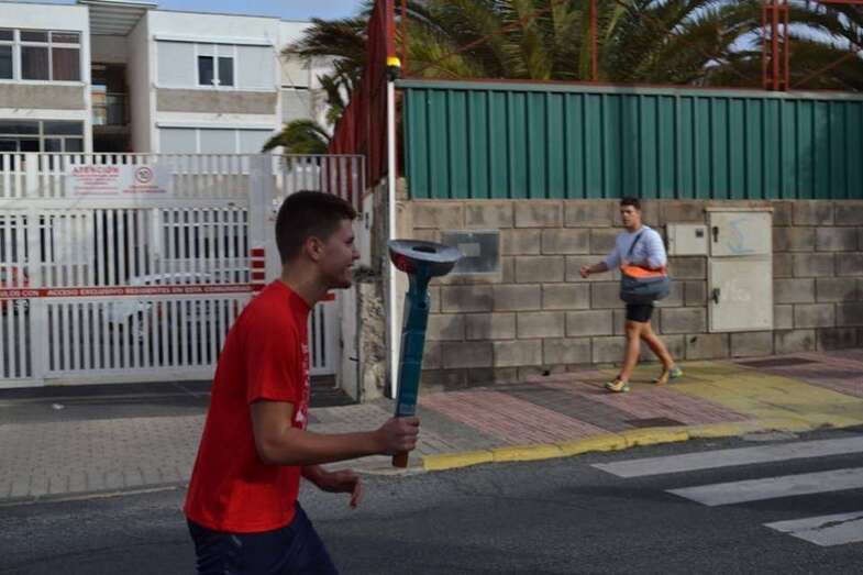 Laureados deportistas teldenseses como el tenista David Marrero, o los atletas Sandra Moreno, Saúl Castro y Gabriel Alemán, así como voluntarios de los colectivos y entidades sociales -como la A.V. El Roque Azucarero- participan en el recorrido de la antorcha por los diferentes barrios y pagos del municipio, en todo momento escoltados por el personal de la Concejalía de Deportes, efectivos de la Policía Local de Telde y de miembros de la agrupación de Protección Civil.