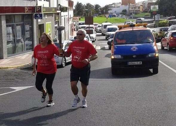 La alcaldesa de Telde y el maestro Domingo Ramos portan la antorcha olímpica en El Calero