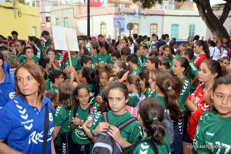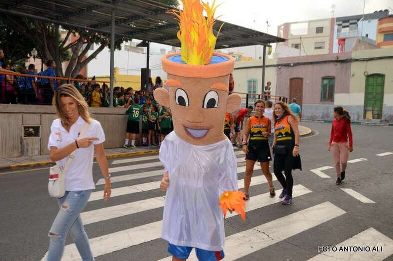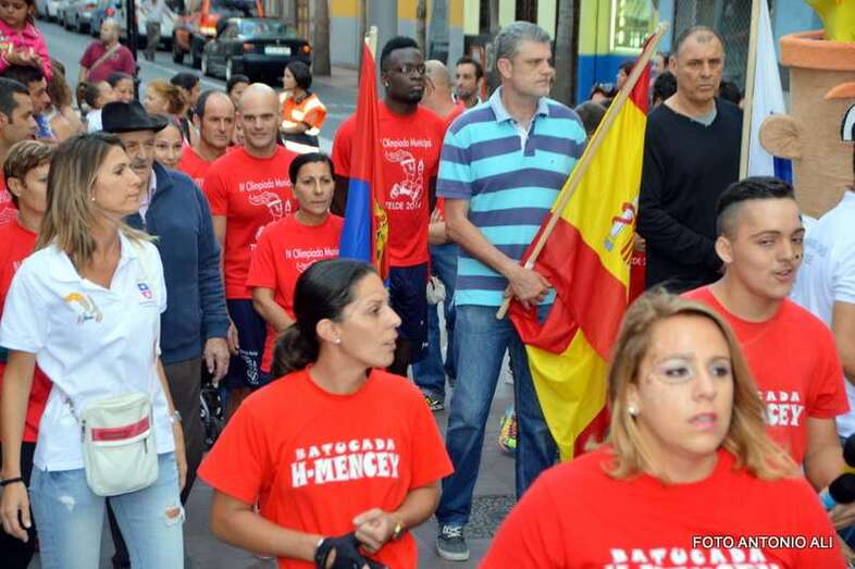 Telde.- El desfile de las IV Olimpiadas Municipales de Telde tiñe de color, desde hace unos minutos, el casco de la ciudad. El espíritu deportivo y el buen ambiente se dejan notar en la amplia comitiva que partió pasadas las 17.15 horas del parque Franchy Roca en dirección a San Juan, en donde tendrá lugar el acto de encendido del pebetero.
