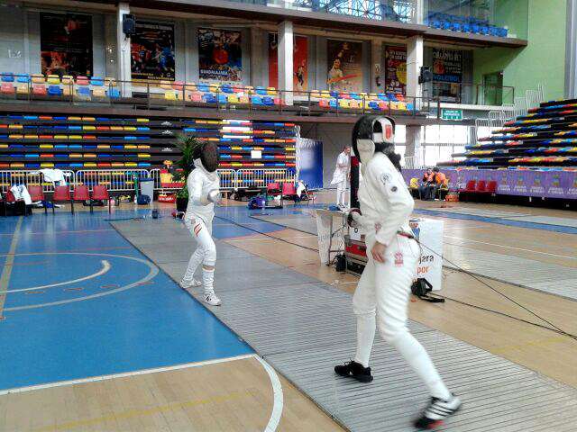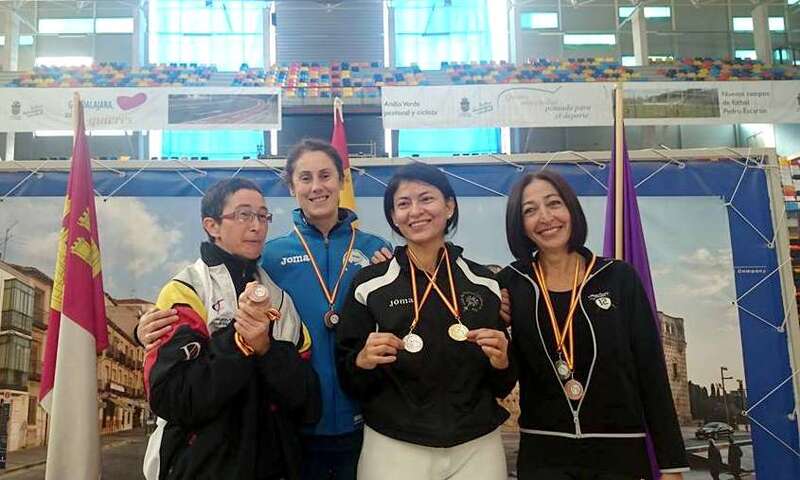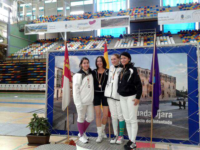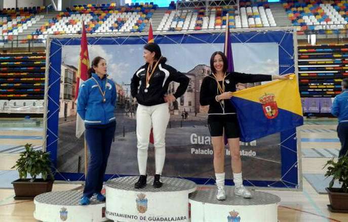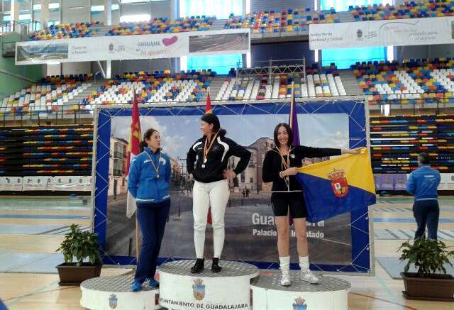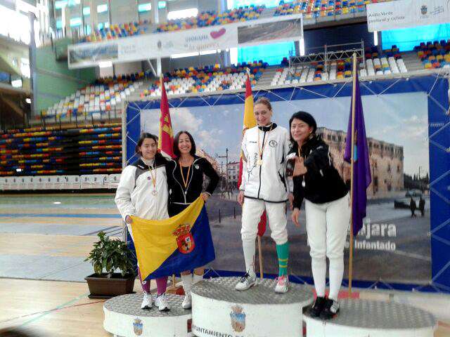 La tiradora del CEISCAN-Telde Cristina Sánchez, 1ª por la derecha, en el pódium de Guadalajara (Foto TA)