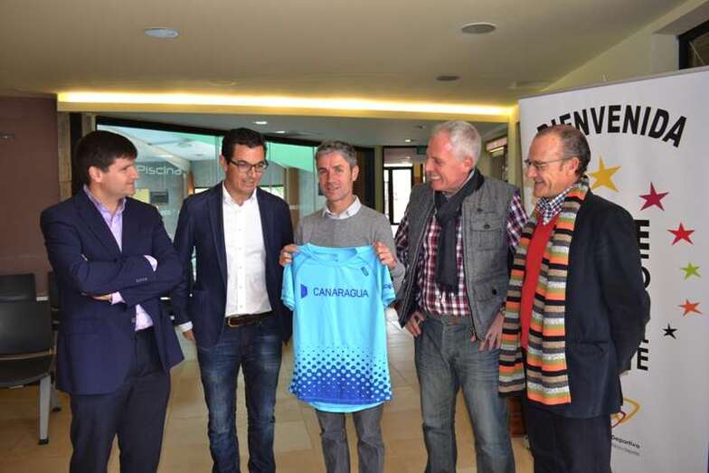 El atleta Martín Fiz junto a los miembros de la Corporación local y dirigentes de Canaragua (Foto TA) El atleta Martín Fiz junto a los miembros de la Corporación local y dirigentes de Canaragua (Foto TA)
