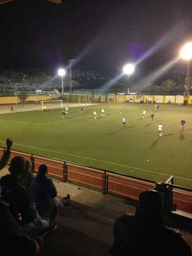 La mejor ocasión visitante llegó superada la primera media hora de partido. Aythami, uno de los mejores del conjunto teldense, agarró un balón en media cancha y tras zafarse de dos contrarios enganchó un buen disparo desde la frontal que se estrelló en la cruceta de un Óliver ya batido. Tras el rechace el balón cayó a los pies de Kilian, cuyo remate no causó problemas al arquero local.