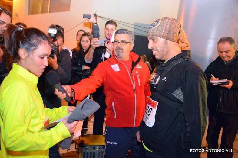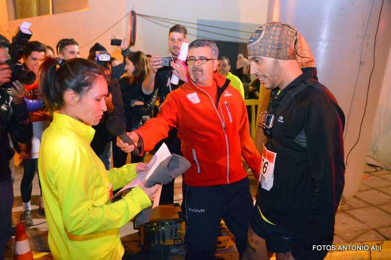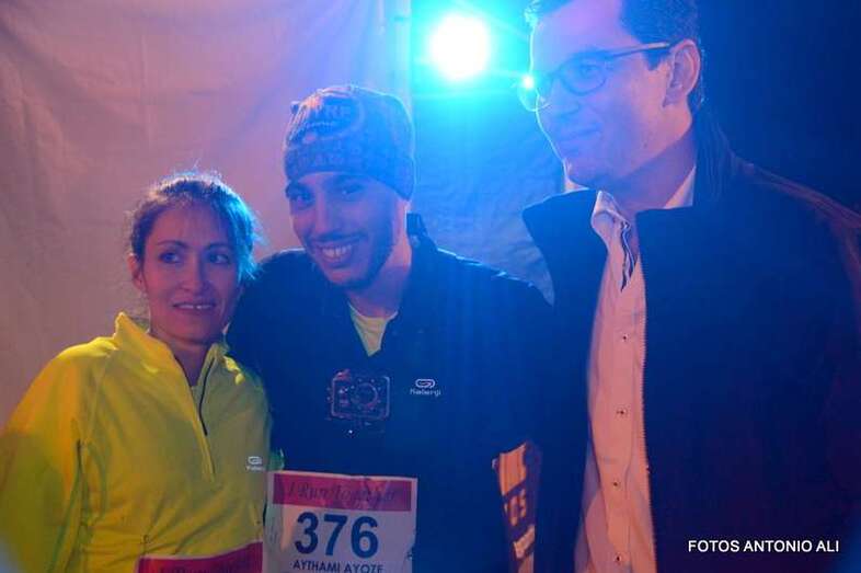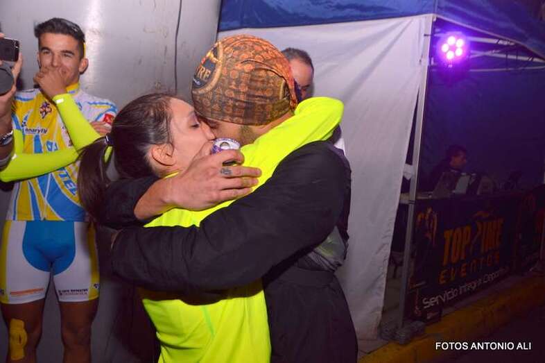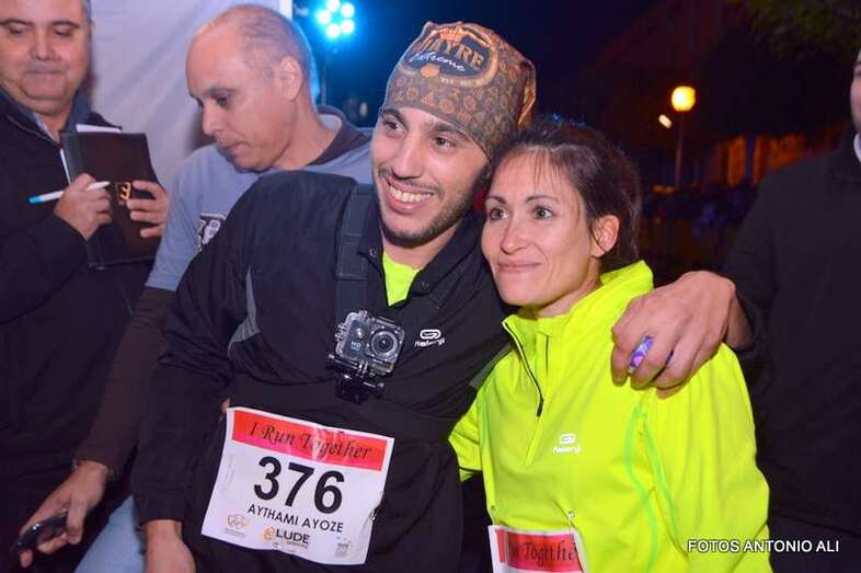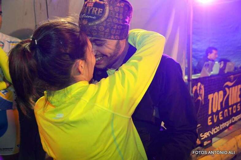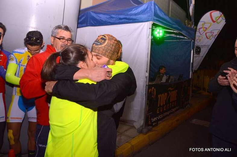 Aythami Ayoze Alcántara y Paola Rivero, de 33 y 30 años respectivamente, llegaron juntos y exhaustos a la meta después de recorrer los 5 kilómetros del circuito urbano por donde esta noche discurrió la bautizada como Carrera del Amor de Telde.