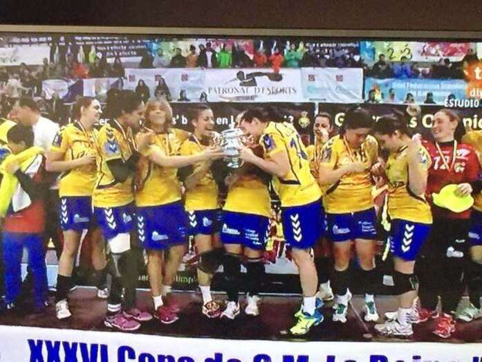 Marta Mangué gana la copa de Francia y el Rocasa Remudas la copa de la reina de España. Éxito doble del balonmano teldense. Que orgullo!