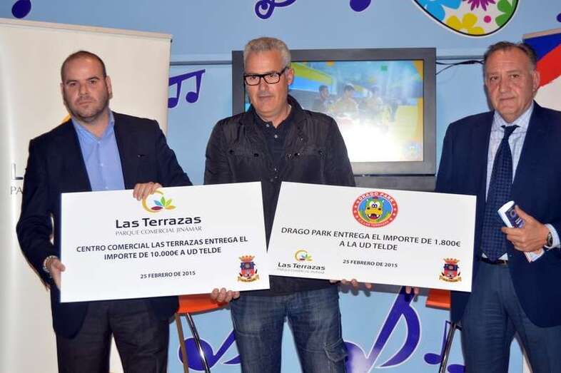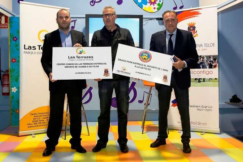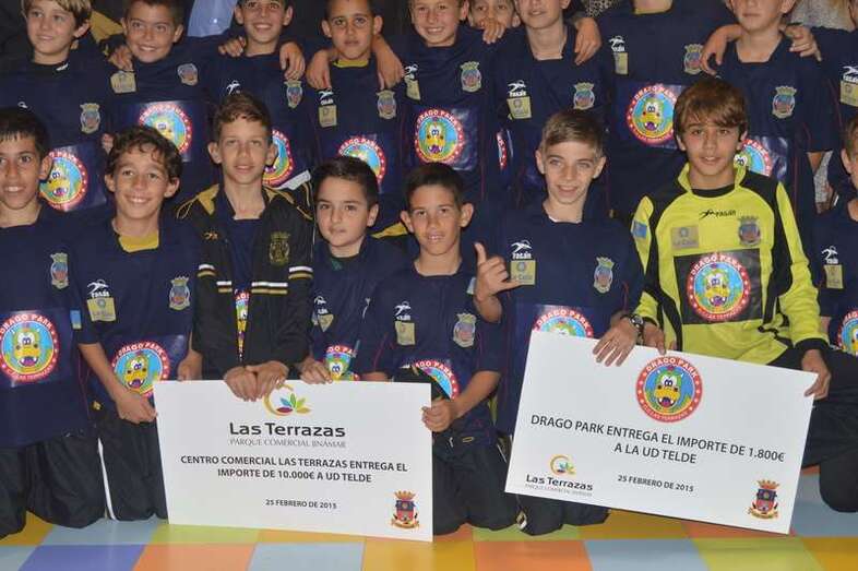 Telde.- Drago Park, establecimiento lúdico-deportivo de Jinámar, y el CC Las Terrazas aportarán a la UD Telde un total de 11.800 euros (10.000 la zona comercial y 1.800 la empresa lúdica) en concepto de patrocinio para los equipos base y toda la cadena de la entidad, respectivamente, en un lazo económico para “apoyar el deporte base teldense”.