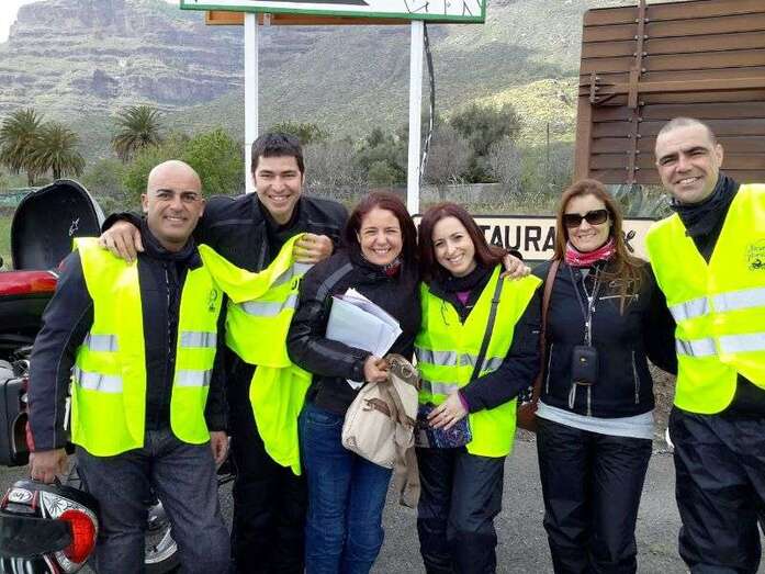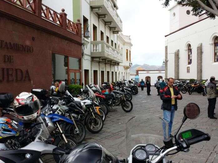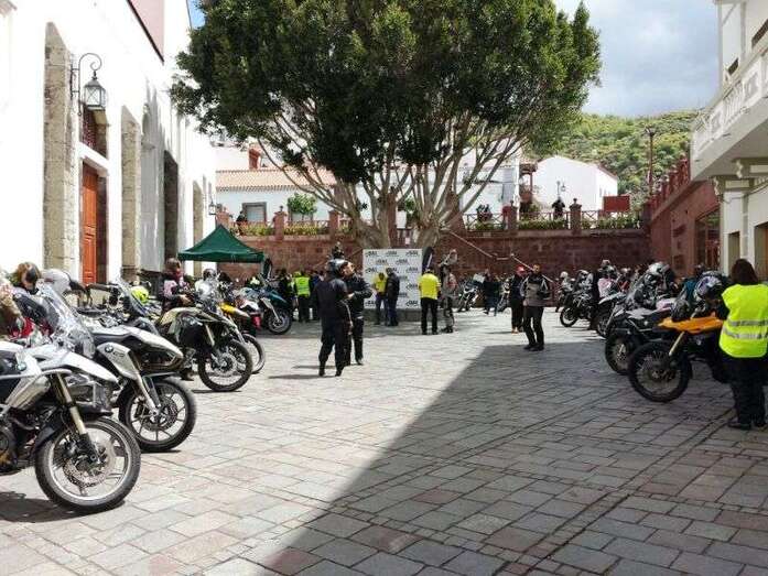 El cielo gris plomizo, con ganas de aguar la fiesta, no pudo amilanar los deseos de la peña. El parque de Mayordomía en Lomo Los Frailes, dio la bienvenida y partida. Firgas hizo los honores de la primera parada y tras dar cuenta de la primavera del centro norte. Tejeda recibió con el cariño y los deseos de consolidar la patrona de los motoristas de Canarias: La Virgen del Socorro.