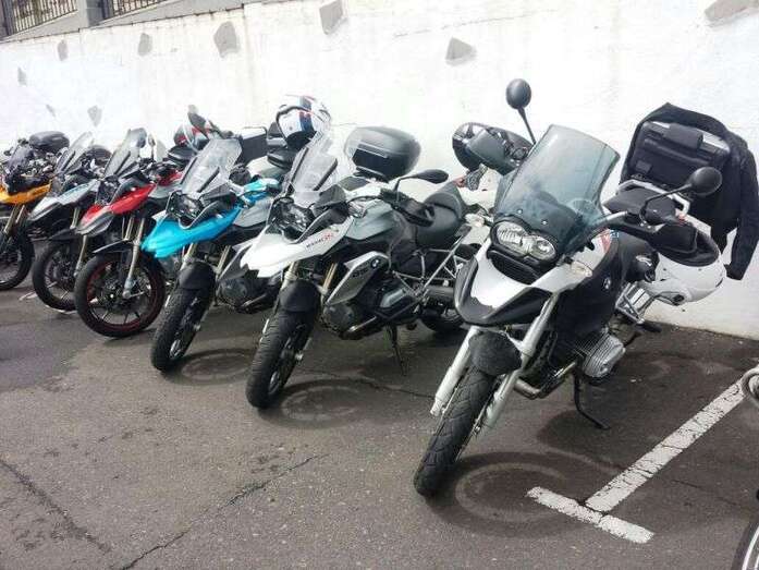 El primer Pasión GS está llamado por la puerta grande a escalar peldaños en manifestación colectiva. Cerca de 50 motos participaron en la caravana de bóxer más peculiar y en alineada formación, cual moderno ejército alemán.