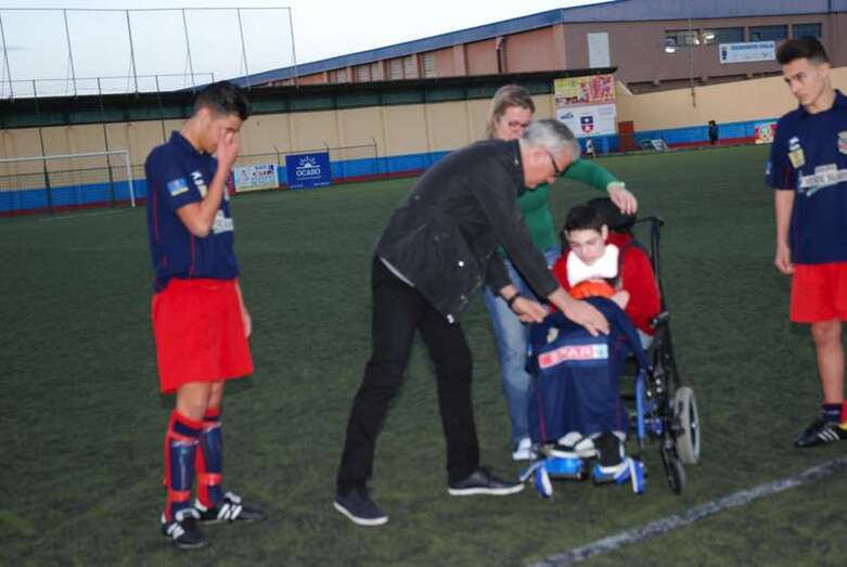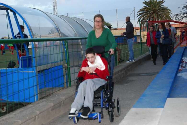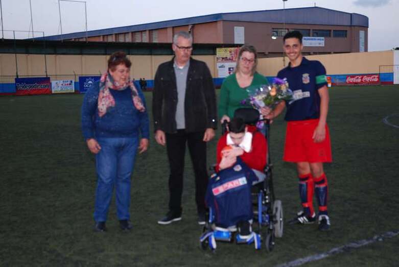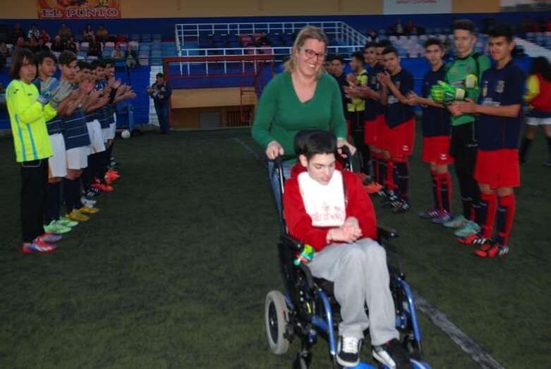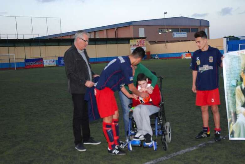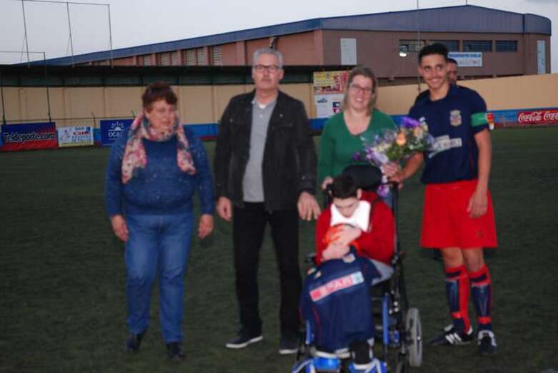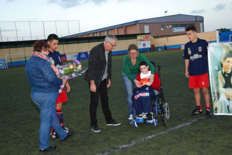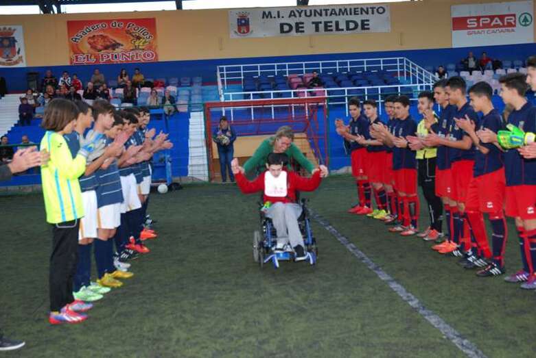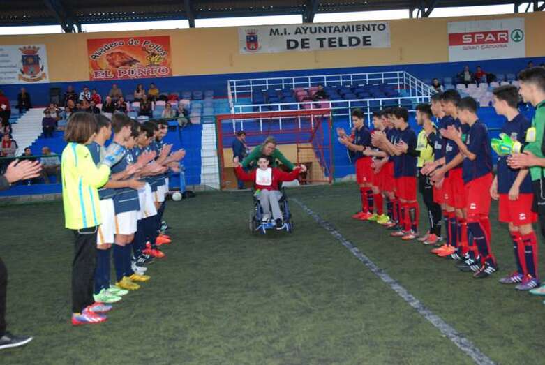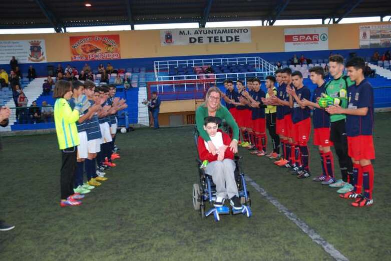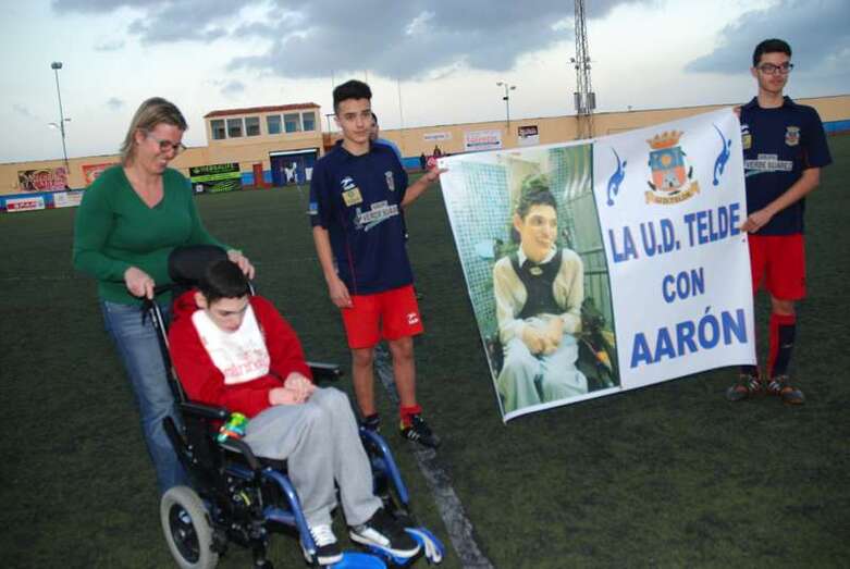 Telde.- Aarón González es un niño teldense de 13 años que padece una parálisis cerebral. Una sentencia judicial reconoció en su día el derecho del menor a ser internado en un centro especializado. Sin embargo, su familia continúa luchando desesperadamente porque se cumplan las medidas ordenadas por el juez y pueda así mejorar su calidad de vida. El pasado fin de semana la Unión Deportiva Telde le brindaba un cariñoso homenaje.