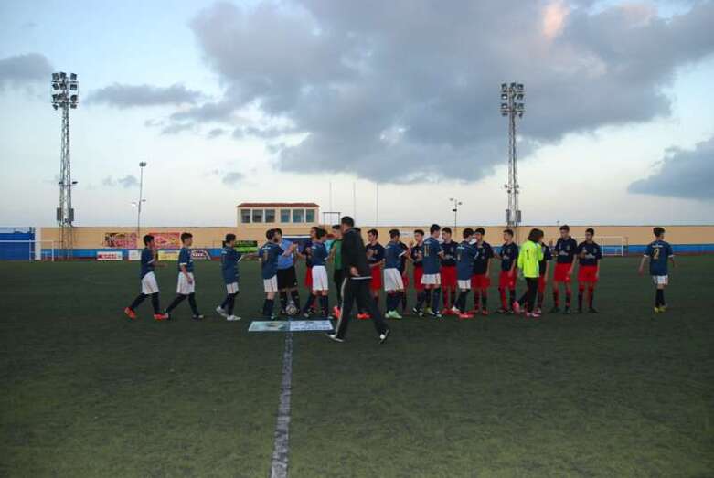 Los jugadores de la U.D. Telde y del C.F. Puertos LP posan junto a Aarón González y sus familiares (Foto TA) Los jugadores de la U.D. Telde y del C.F. Puertos LP posan junto a Aarón González y sus familiares (Foto TA)