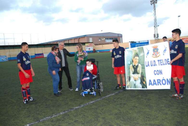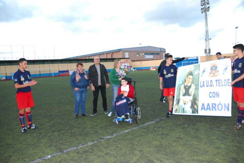 La Unión Deportiva Telde se volcó el pasado sábado con Aarón González. En los prolegómenos del partido de categoría cadete preferente que enfrentaba al equipo local con el C.F. Puertos LP, ambos equipos y sus aficiones homenajeaban al pequeño y a su familia.