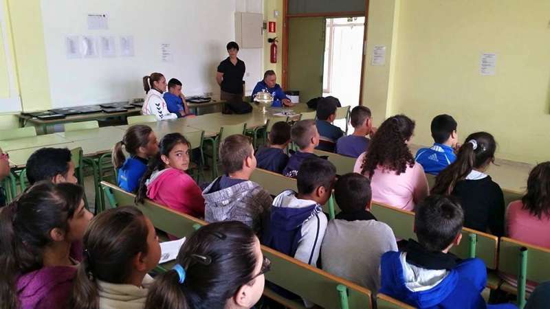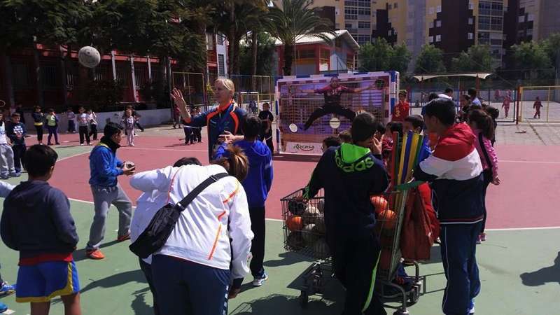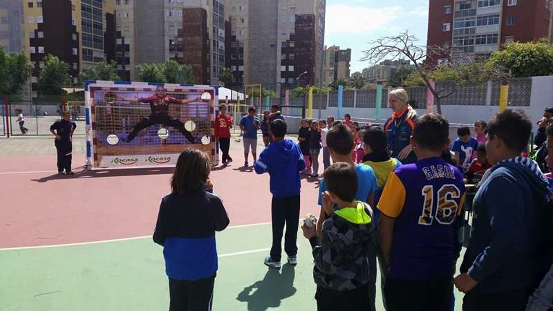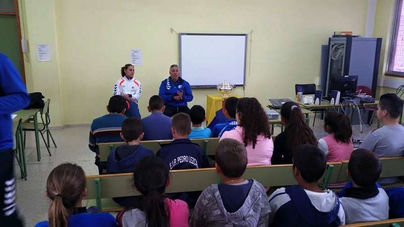 Telde.- El colegio público Pedro Lezcano del Valle de Jinámar celebró esta mañana el Día del Balonmano. Una jornada de práctica deportiva y en la que los alumnos disfrutaron de la visita de Davinia López y Paco Santana, capitana y entrenador del Rocasa ACE Gran Canaria, quienes trasladaron hasta el centro educativo el trofeo de la Copa de la Reina cosechado este año por el conjunto teldense.