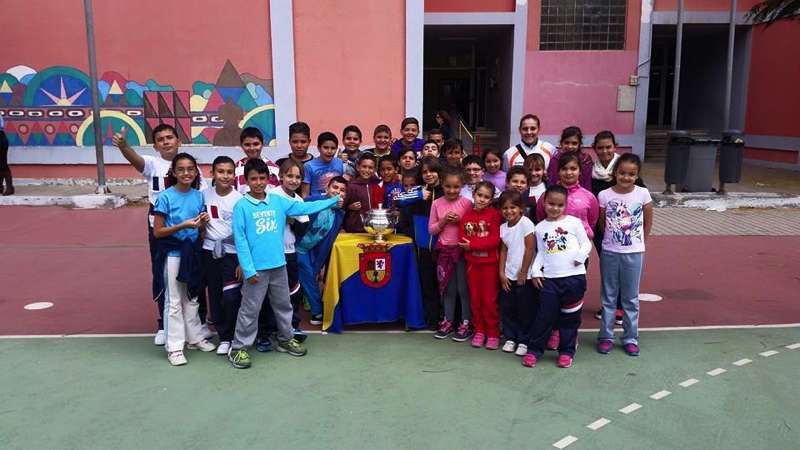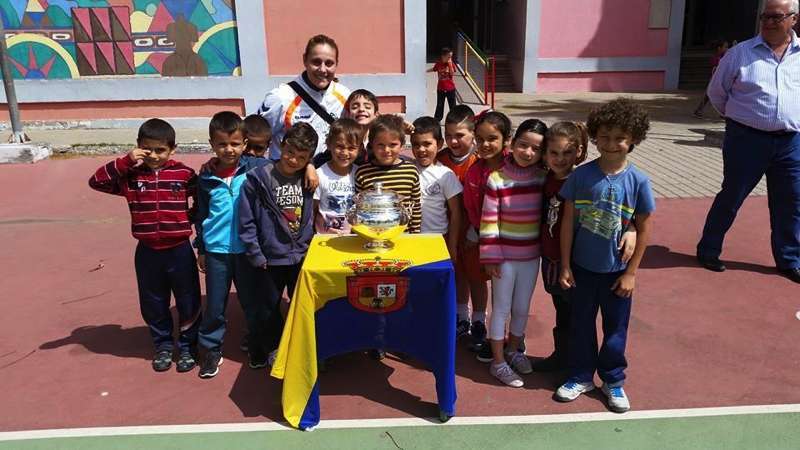Como colofón, los escolares pudieron tocar y retratarse junto a la Copa de la Reina, entorchado conquistado este año por el Rocasa ACE Gran Canaria que preside el docente Antonio Moreno, quien tampoco quiso faltar a la cita.