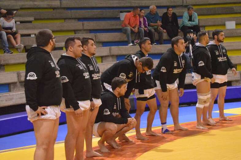 El Guanarteme, dirigido por Ramón Bosa, levantó la luchada hasta el empate a nueve. Su puntal B Aday Barbuzano logró derribar las dos seguidas a Jonay Alemán. El segundo máximo exponente teldense trató de derribar al contrario con una tronchada en los segundos finales de la segunda agarrada, pero cayó primero al tatami capitalino.