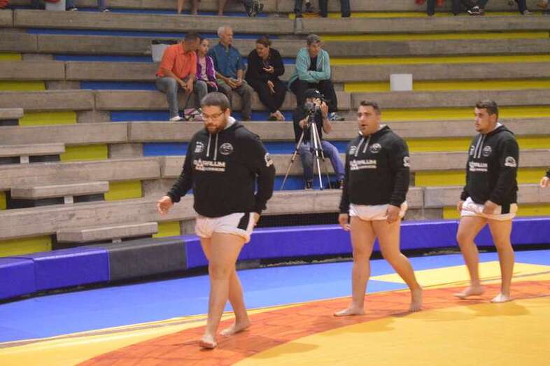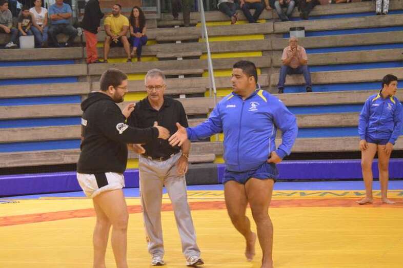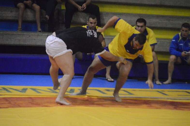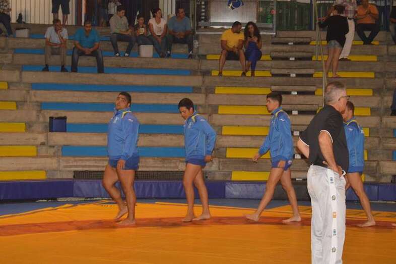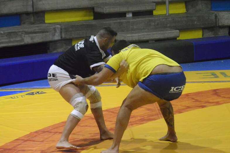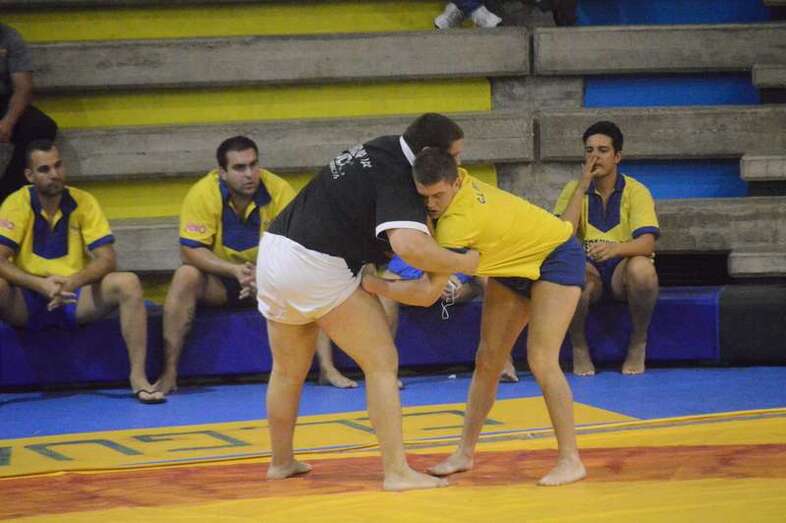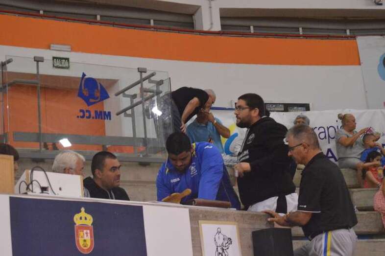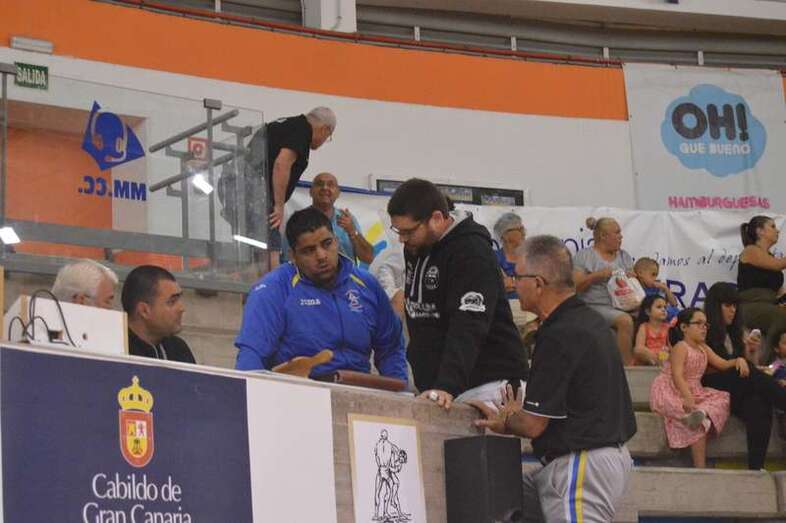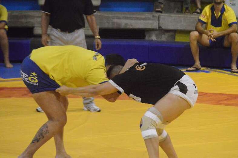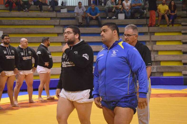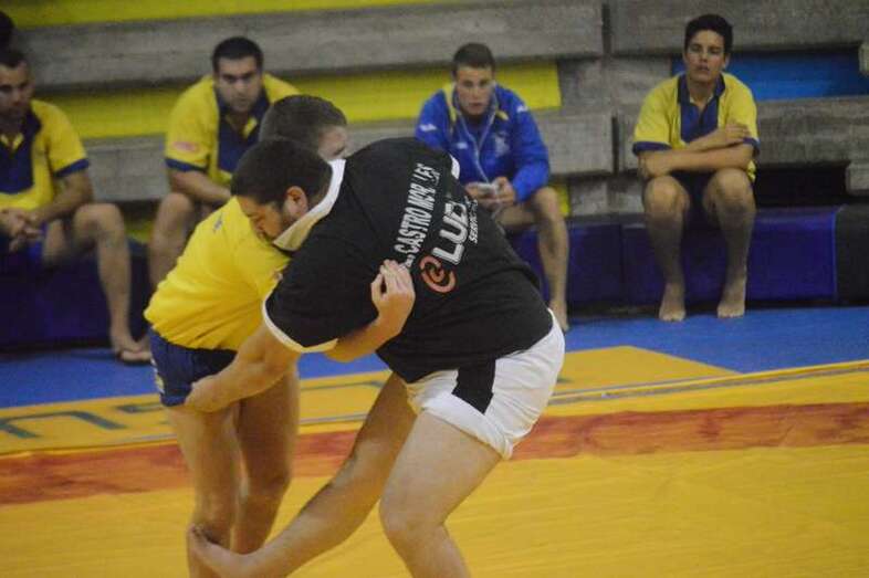 El sénior del equipo blanquinegro aguantó durante un minuto los intentos de derribo del corpulento luchador local. Arriesgó con una burra, pero Herrera aprovechó el pie enganchado de su rival para empujarle hacia atrás y darle la victoria al Guanarteme.