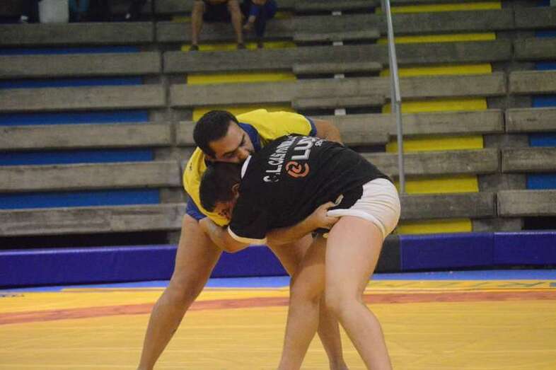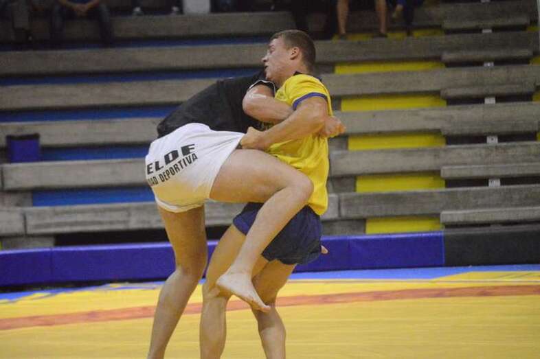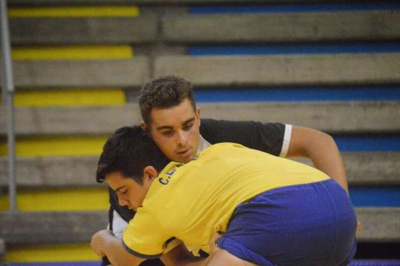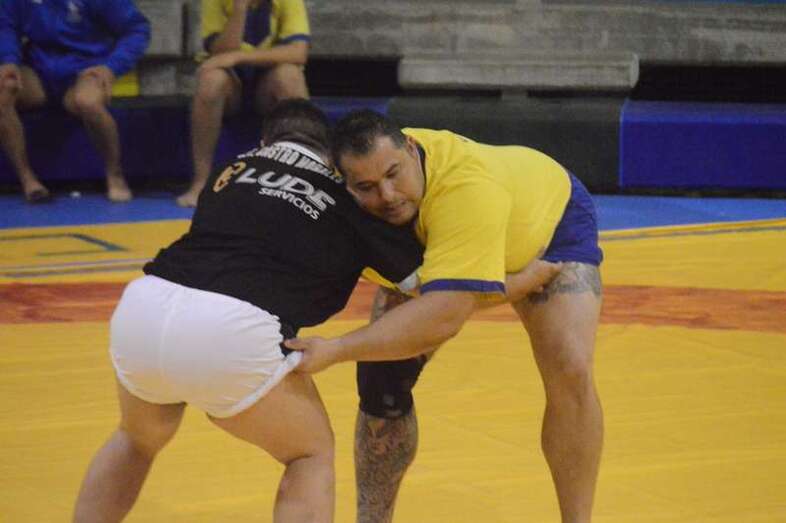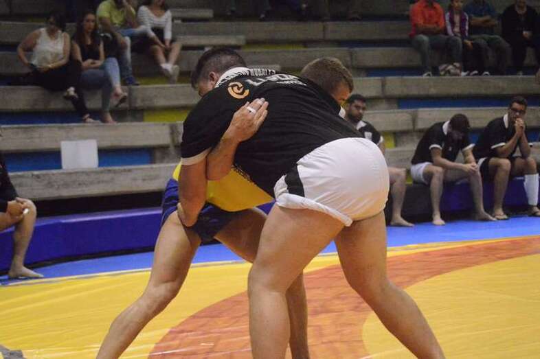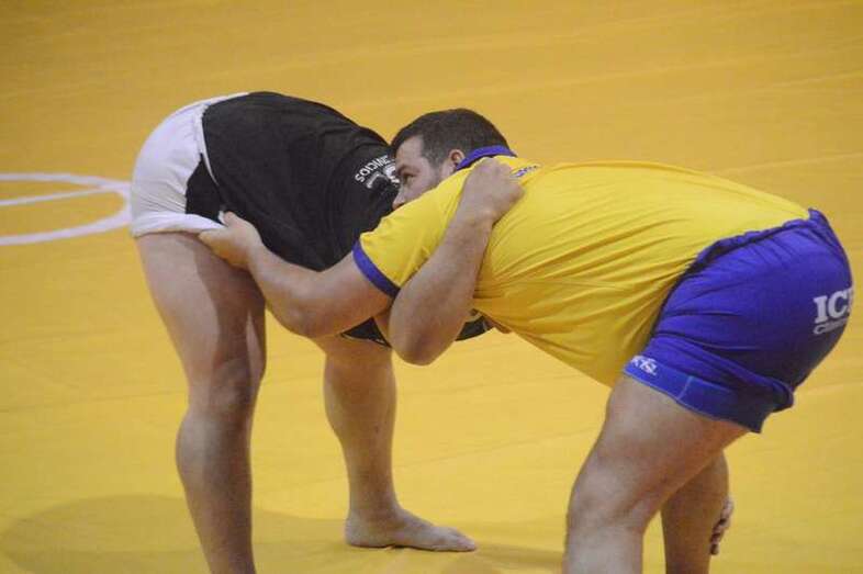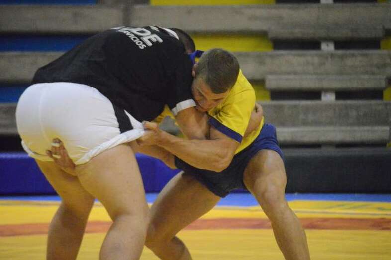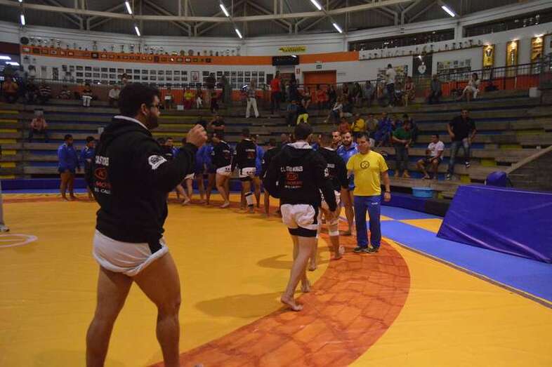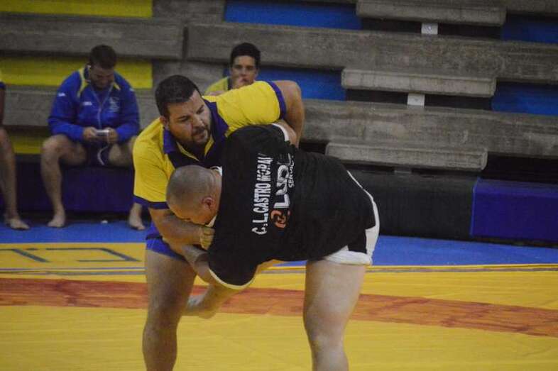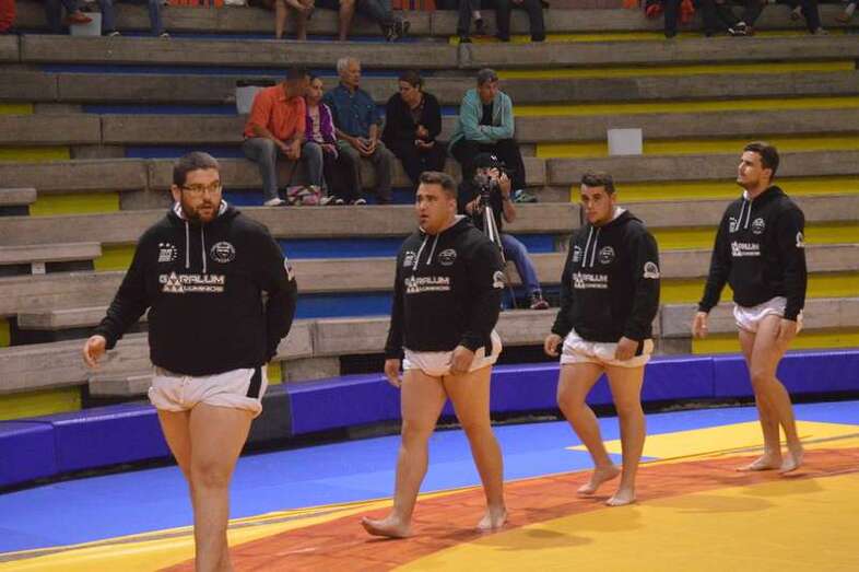 El sénior del equipo blanquinegro aguantó durante un minuto los intentos de derribo del corpulento luchador local. Arriesgó con una burra, pero Herrera aprovechó el pie enganchado de su rival para empujarle hacia atrás y darle la victoria al Guanarteme.