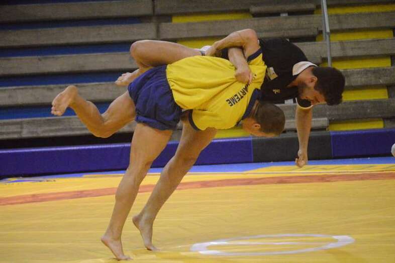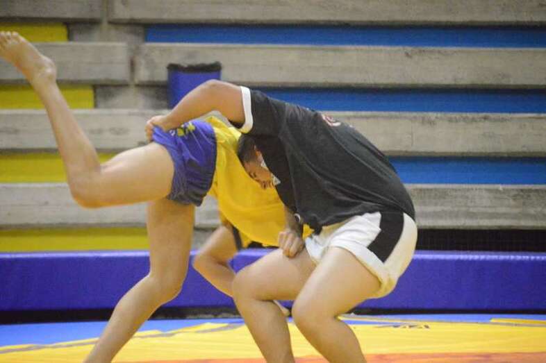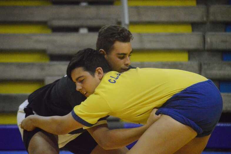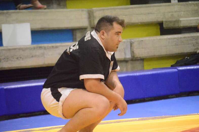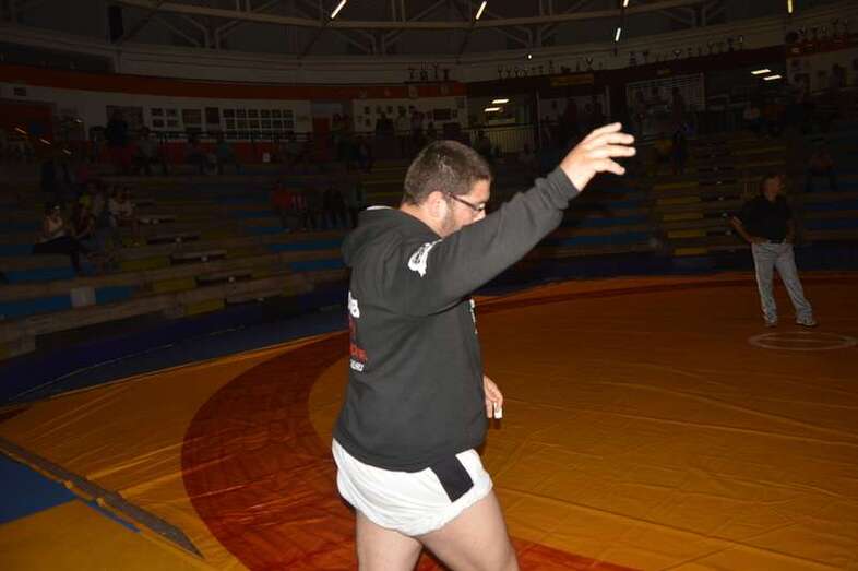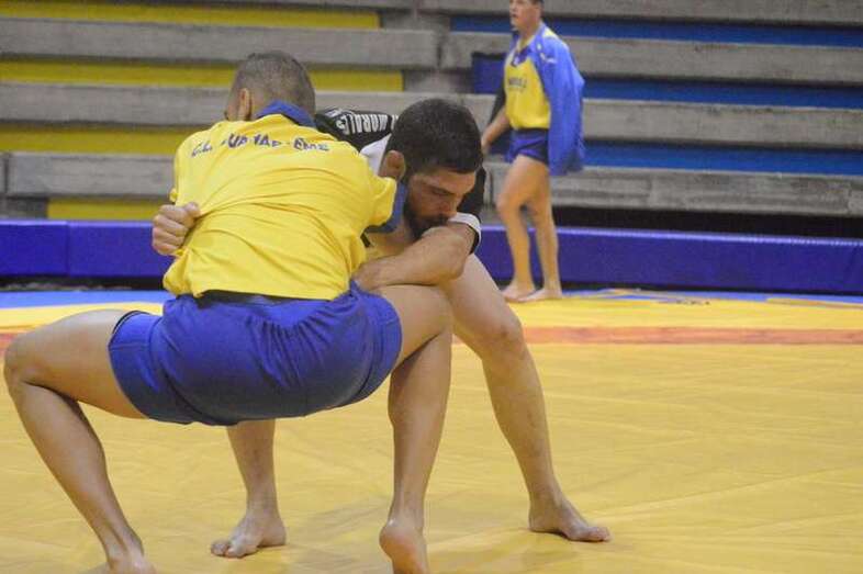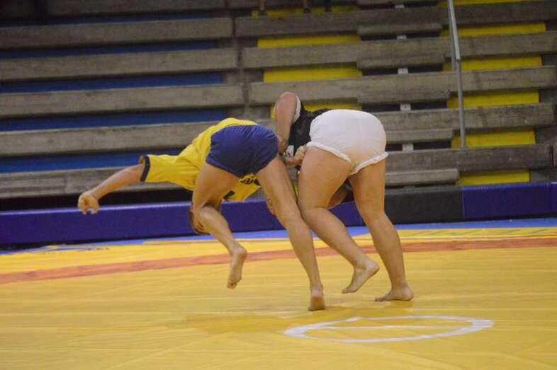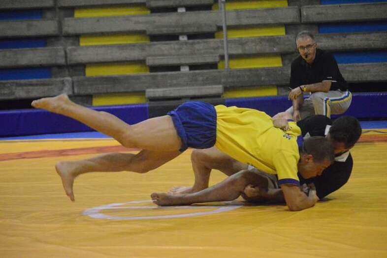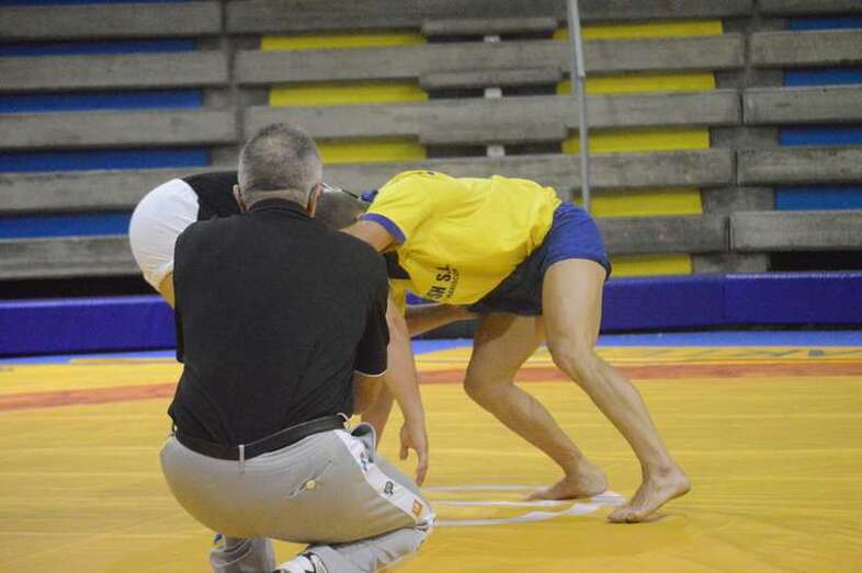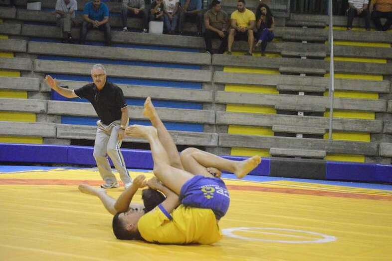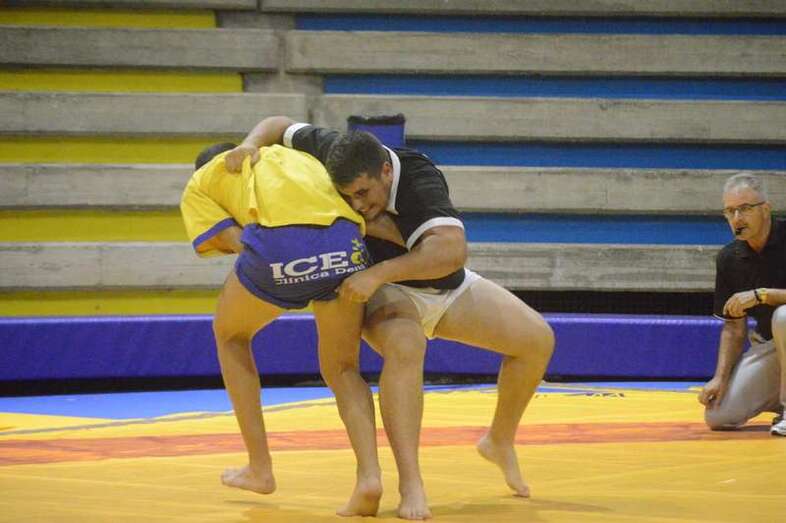 El sénior del equipo blanquinegro aguantó durante un minuto los intentos de derribo del corpulento luchador local. Arriesgó con una burra, pero Herrera aprovechó el pie enganchado de su rival para empujarle hacia atrás y darle la victoria al Guanarteme.