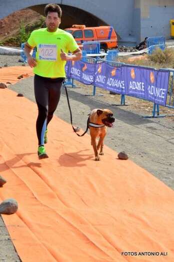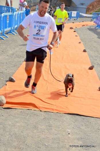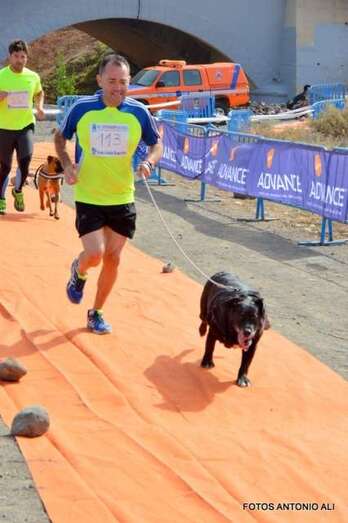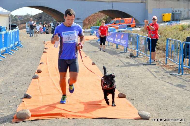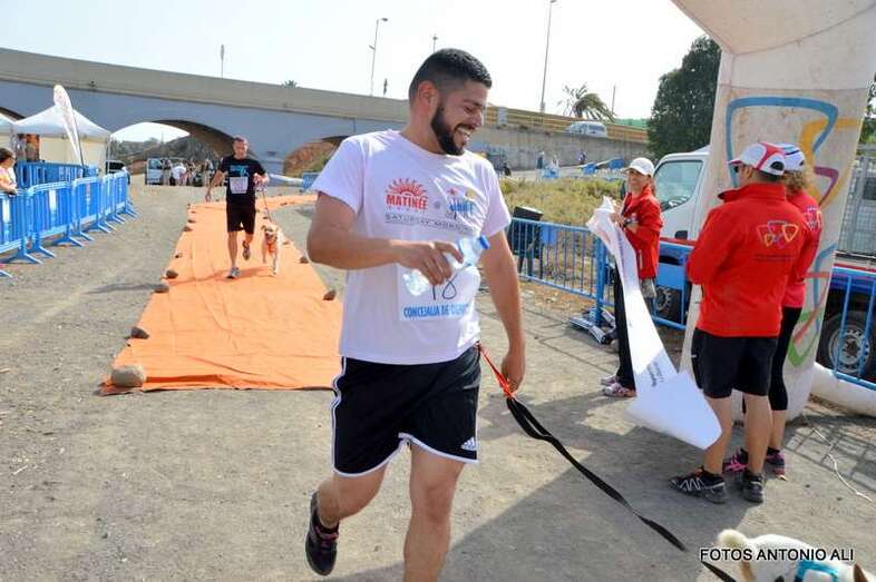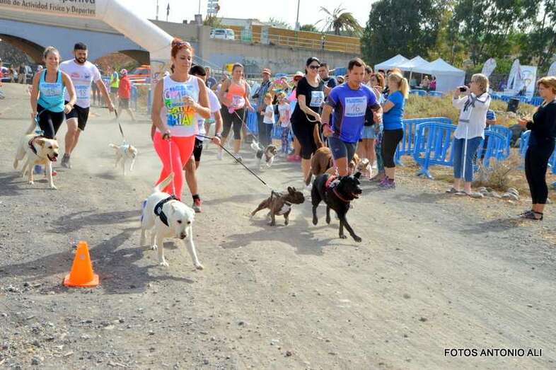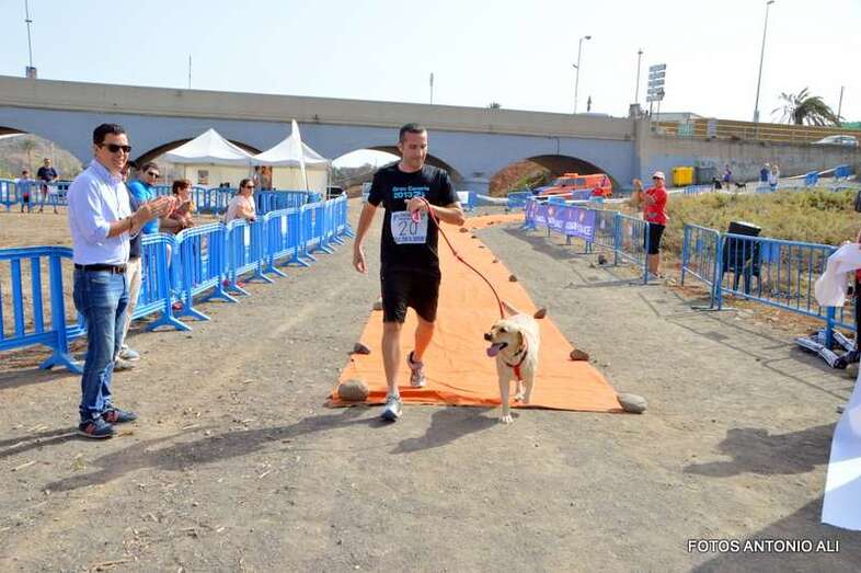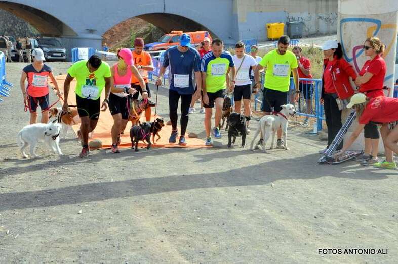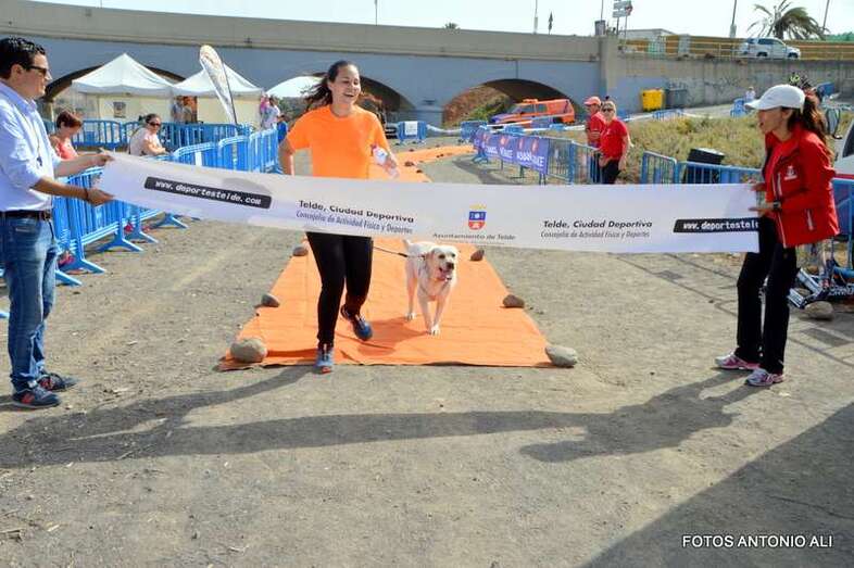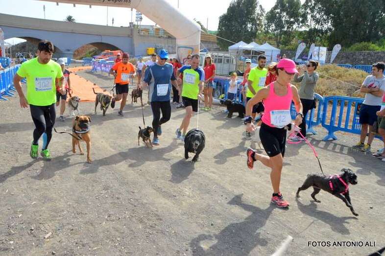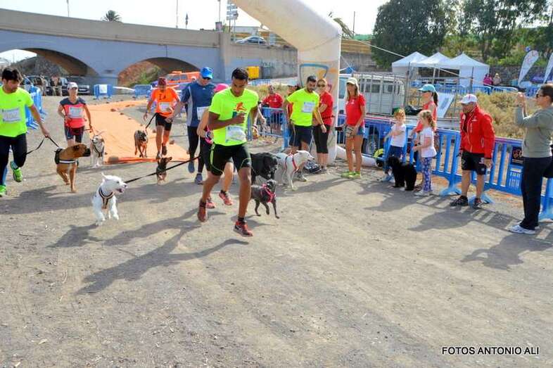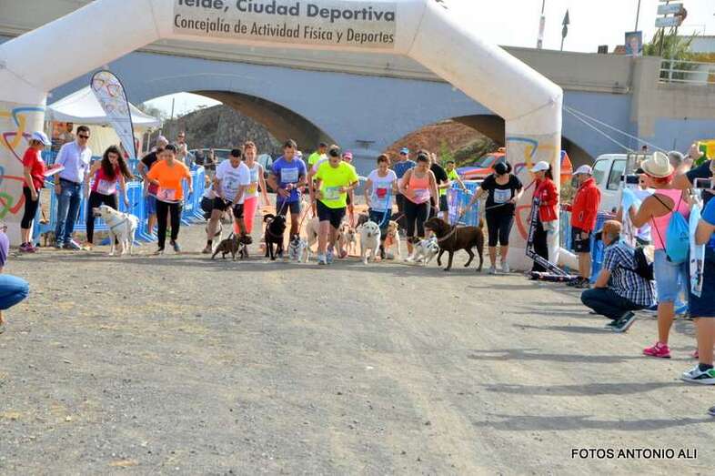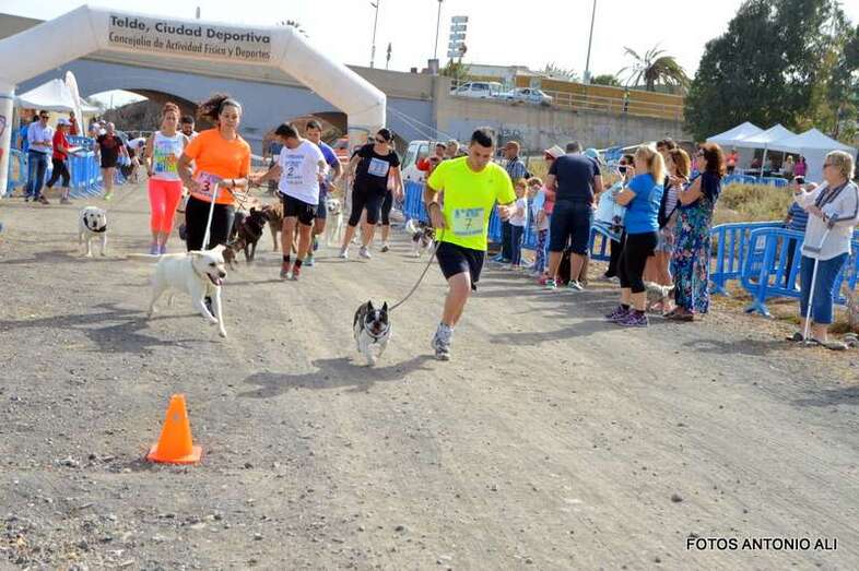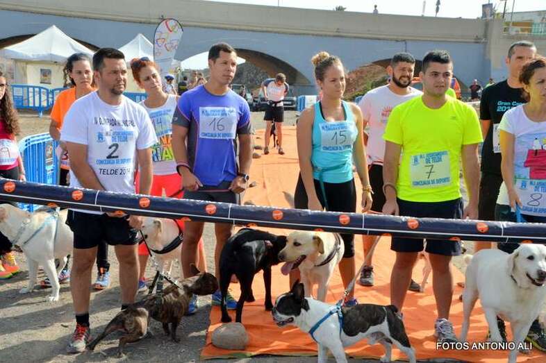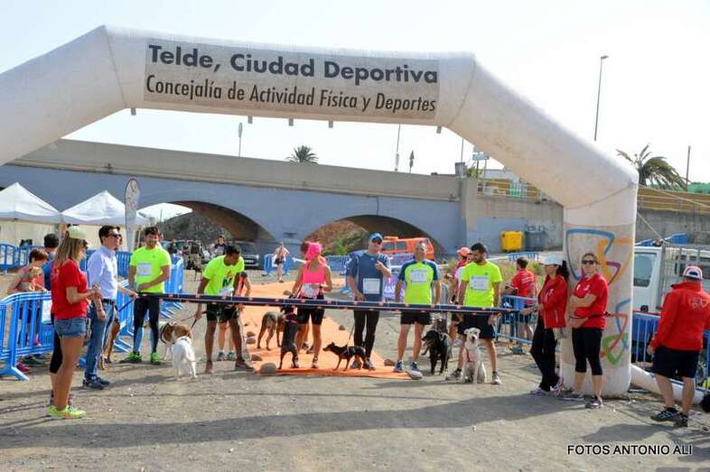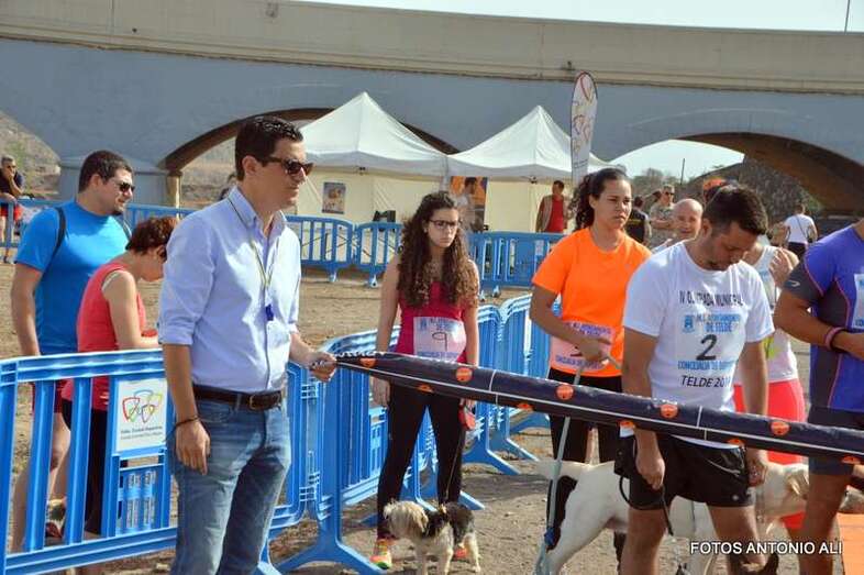 Telde.- Un total de 32 perros participaron este domingo con sus dueños en el I  Can Cross Popular Telde Ciudad Europea del Deportes 2015 que se desarrolló por un circuito habilitado en el Barranco Real de Telde, en el sector de los Siete Puentes. La carrera tuvo un marcado carácter solidario al colaborar con la niña Iraya. TA ofrece reportaje gráfico.