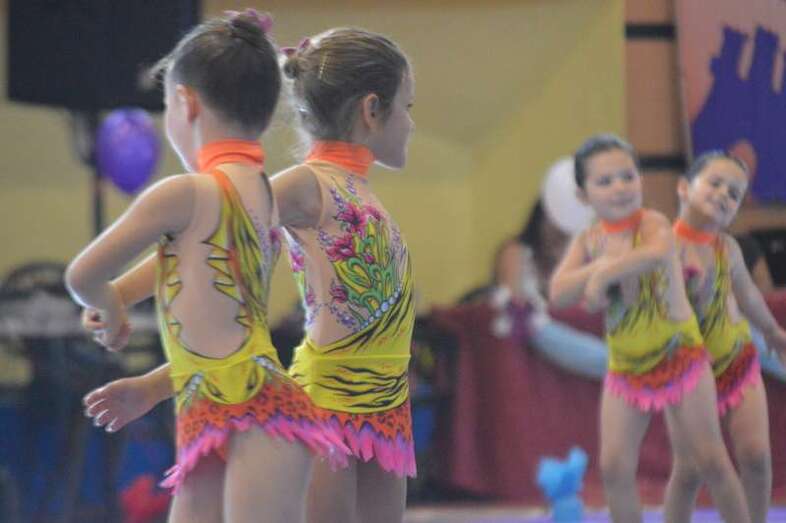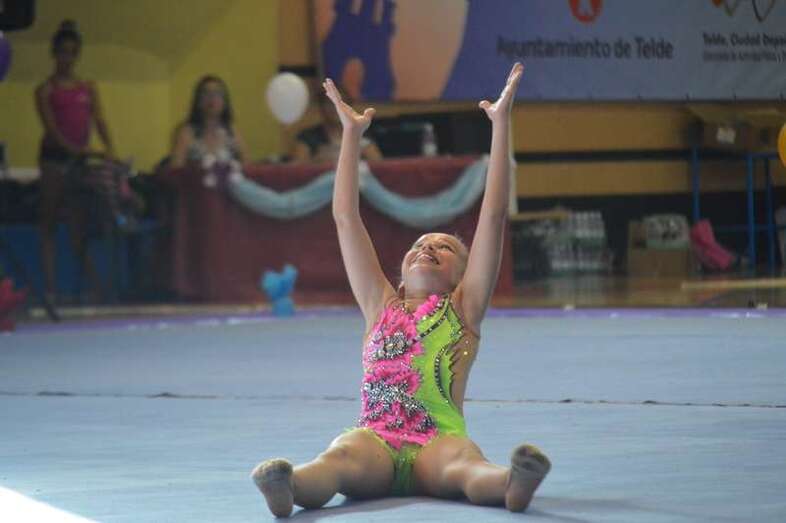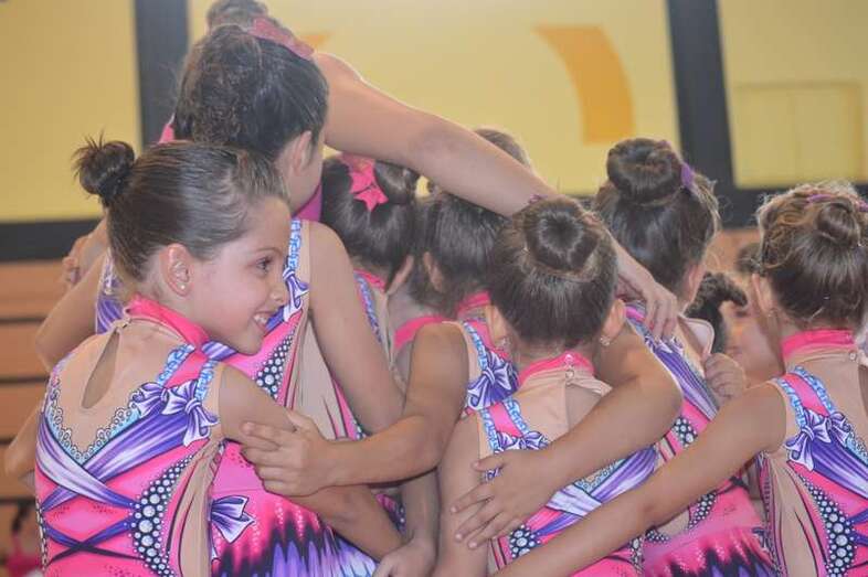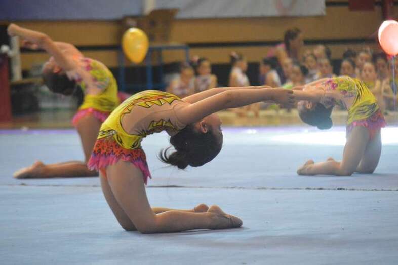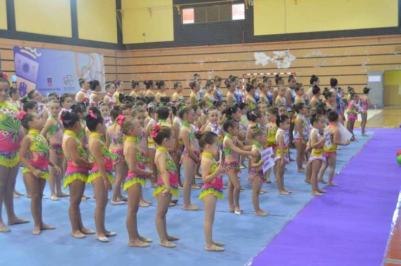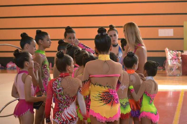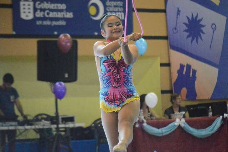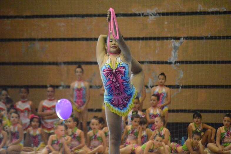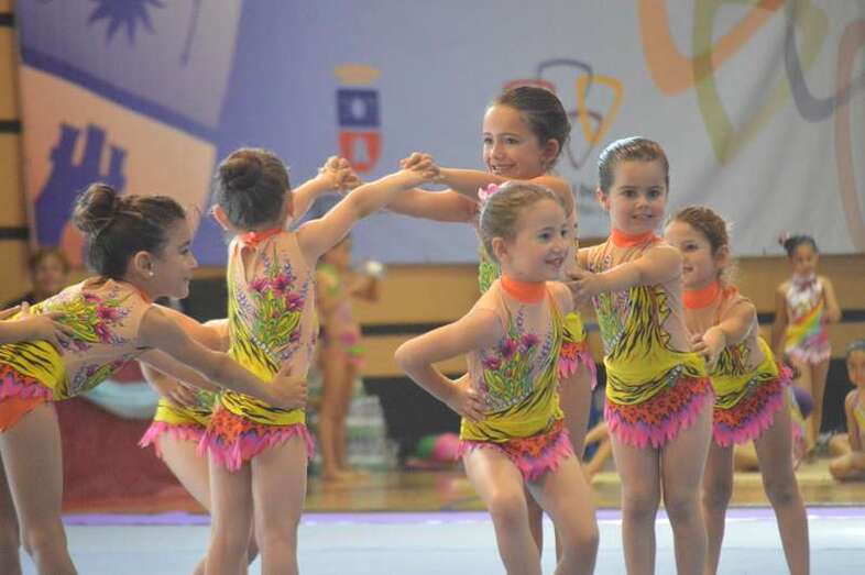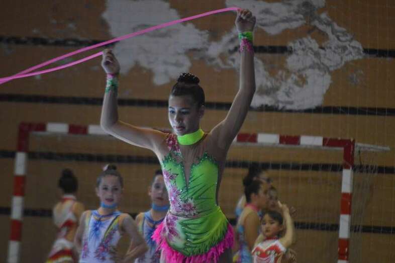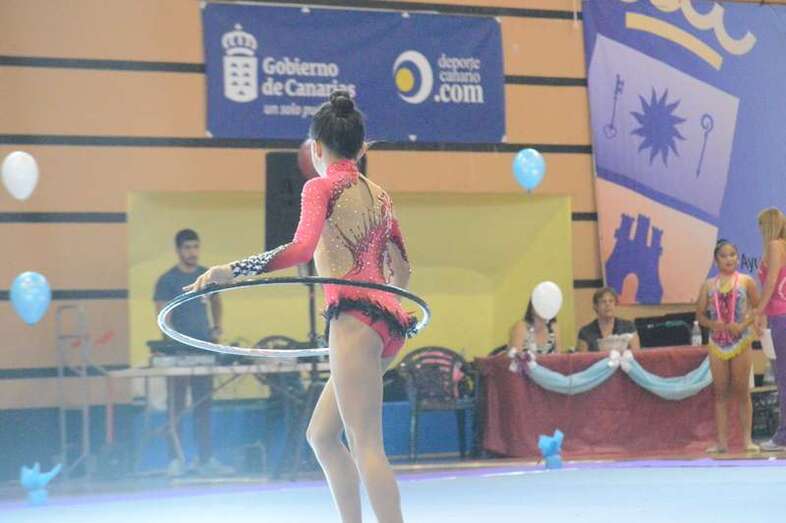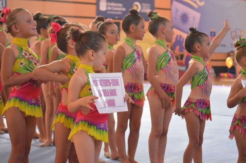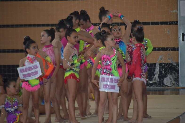 Ante medio millar de padres, madres y abuelos, las jóvenes del club dieron un festival de gimnasia rítmica en un pabellón a reventar, cuya fila de entrada al recinto de San Juan se encontraba abarrotada 45 minutos antes del comienzo de las exhibiciones.