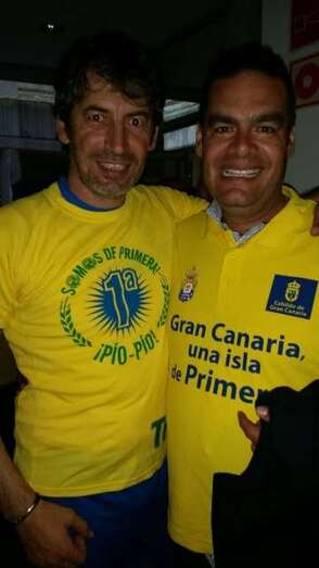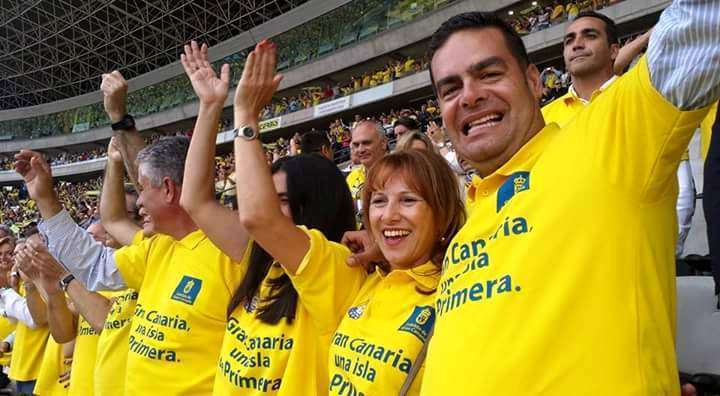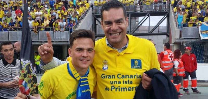 El concejal de Deportes, Diego Ojeda, que estaba en el Estadio de Gran Canaria siguiendo el partido, bajó hasta el campo para felicitar a todos los jugadores de la UD Las Palmas, especialmente al teldense Roque Mesa. También lo hizo la consejera insular, Inés Jiménez, igualmente de Telde.