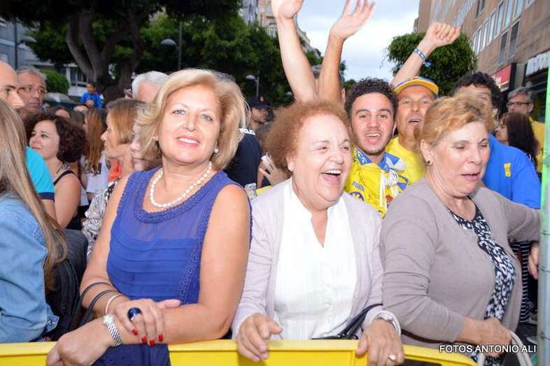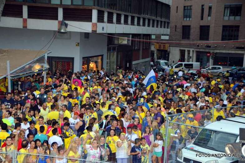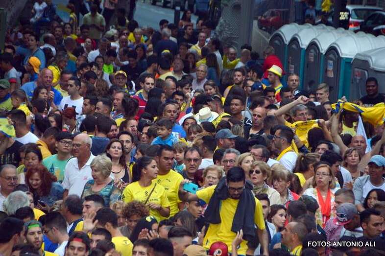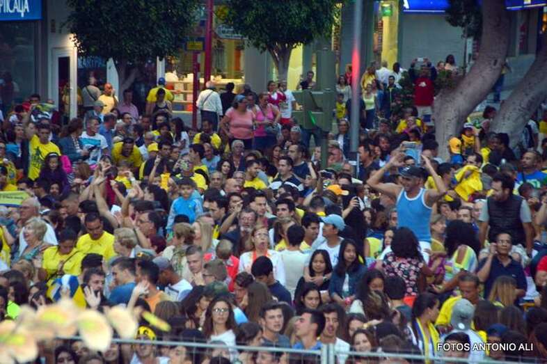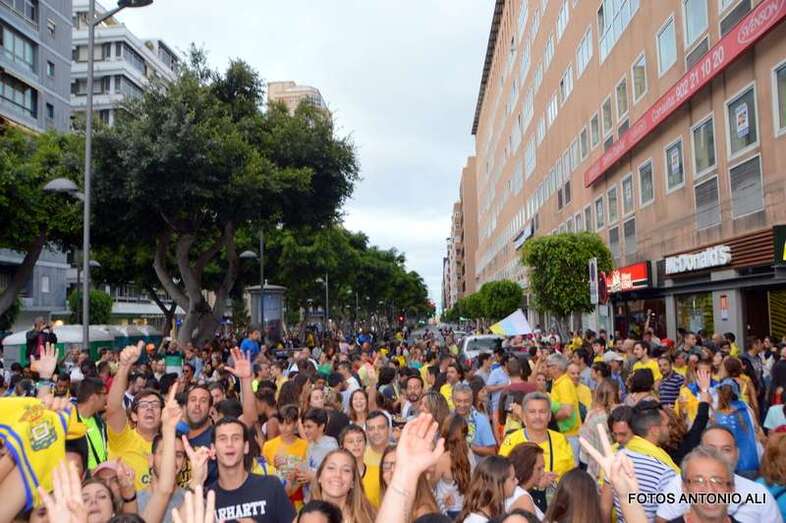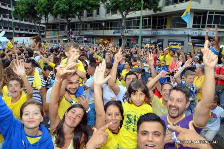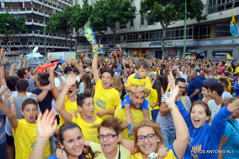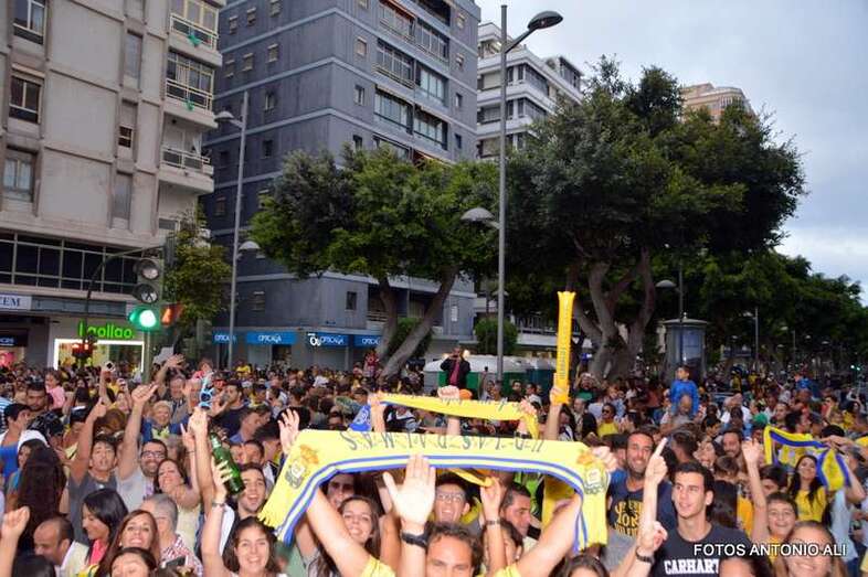 Cientos de ciudadanos del municipio se han desplazado ya a la Plaza de la Victoria, de la capital grancanaria, para celebrar de forma multitudinaria el ascenso a Primera División.
