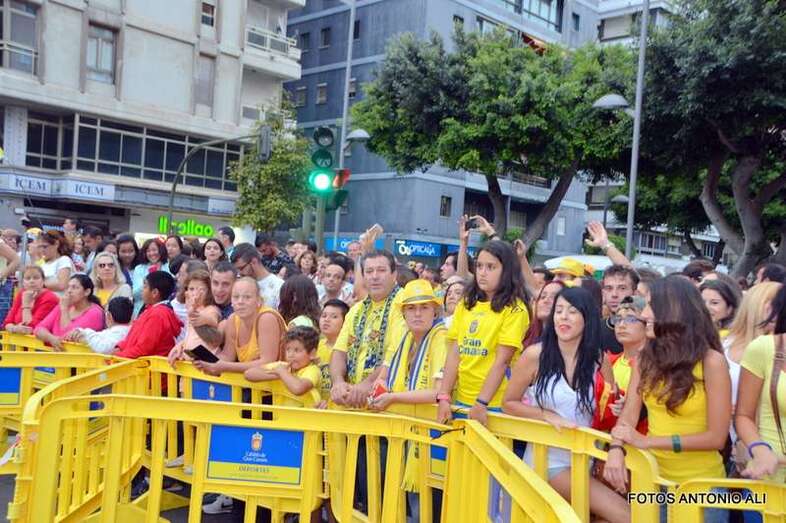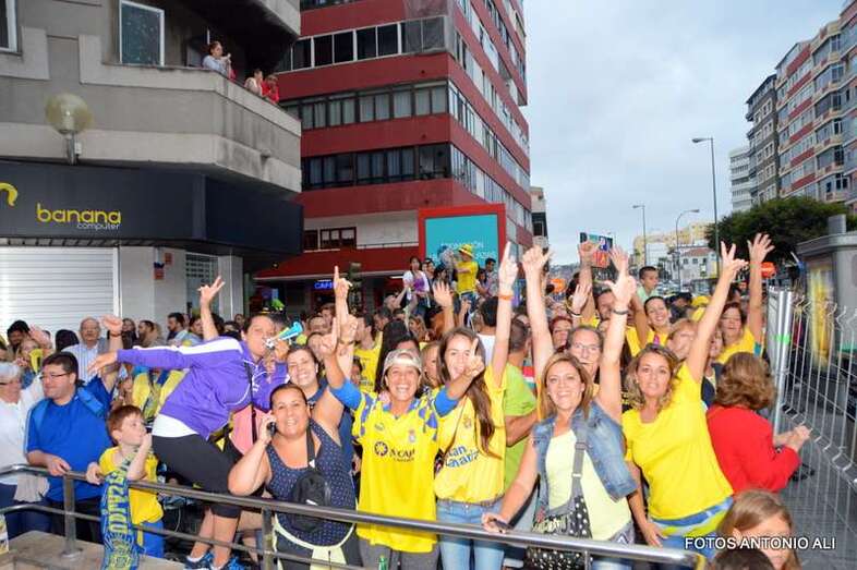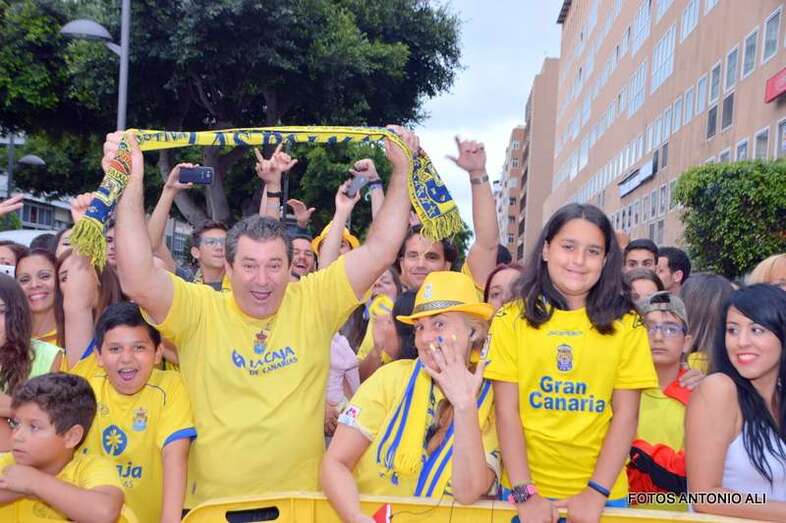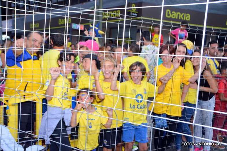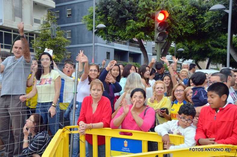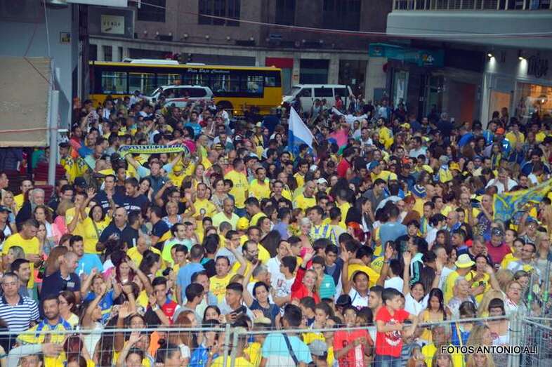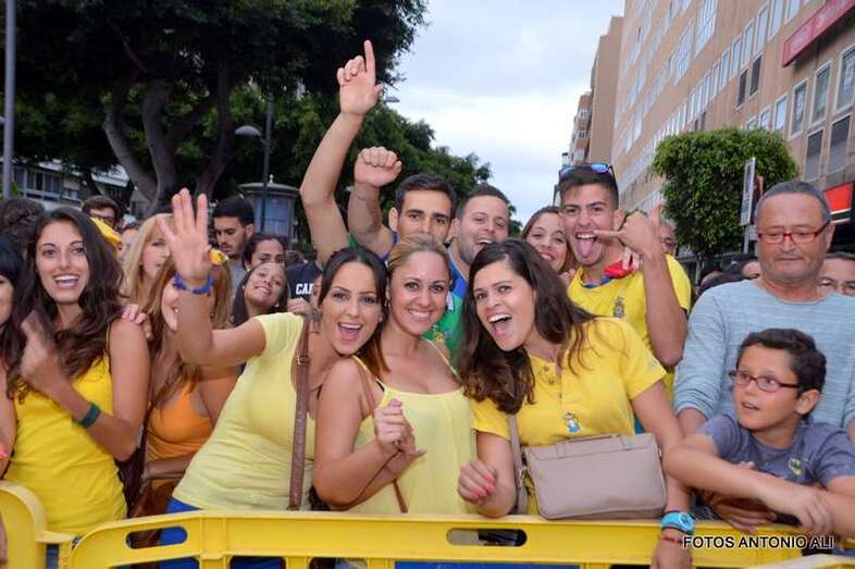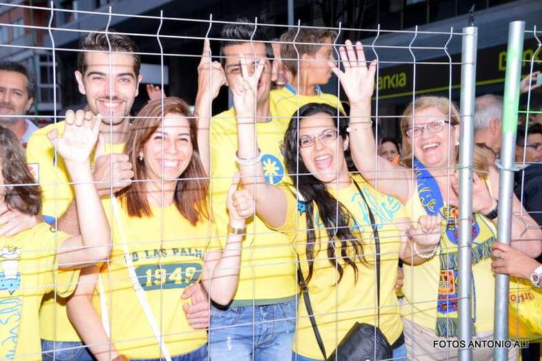 Cientos de ciudadanos del municipio se han desplazado ya a la Plaza de la Victoria, de la capital grancanaria, para celebrar de forma multitudinaria el ascenso a Primera División.
