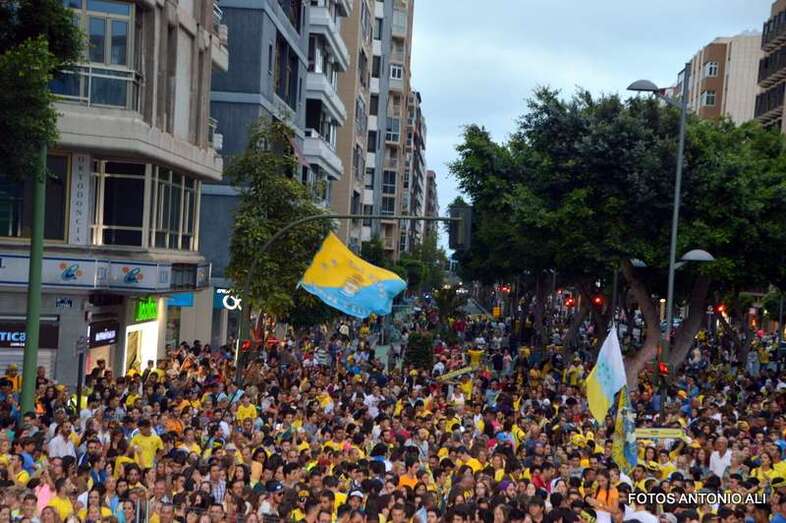Consumada la victoria, los coches comenzaron a hacer sonar sus bocinas y se escucharon fuegos artificiales por varios rincones de la ciudad, una fiesta que ha comenzado en el escenario del partido, donde más de 28.000 espectadores han sido testigos directos del sexto ascenso histórico de la Unión Deportiva, a dos meses de cumplir 66 años de historia.