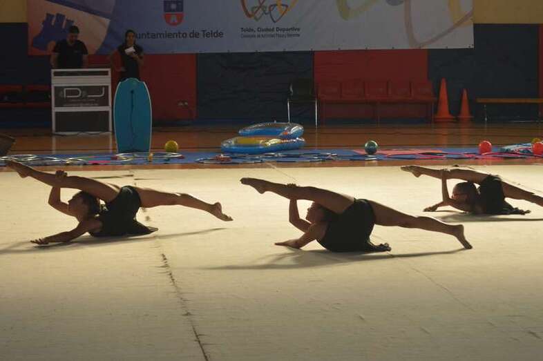 Los gimnastas, unos 120, que compone la entidad presidida por Mónica Suárez se pusieron los vestidos para saltar al tapete y mostrar las mejores coreografías que durante siete meses han mostrado al público grancanario en todas las competiciones en las que han participado.